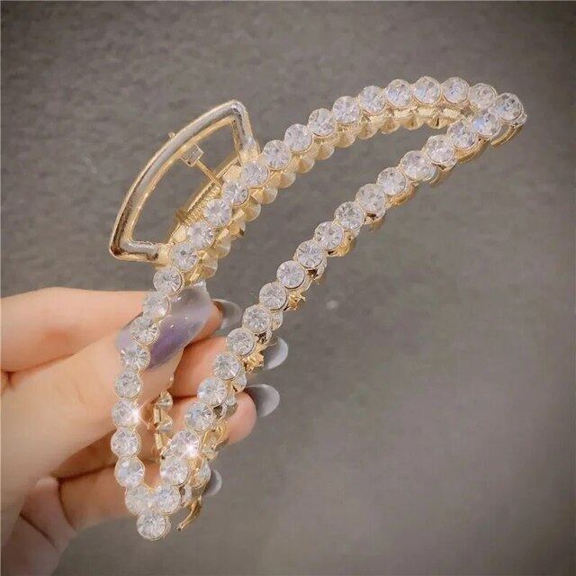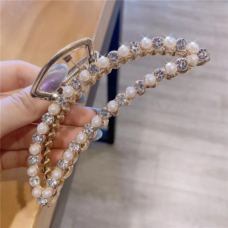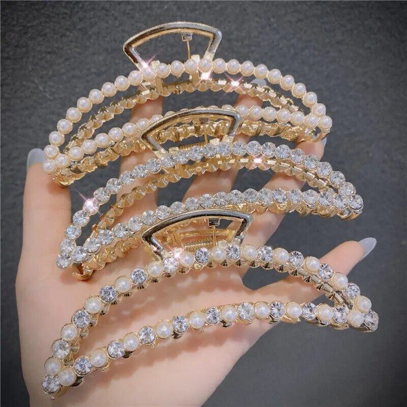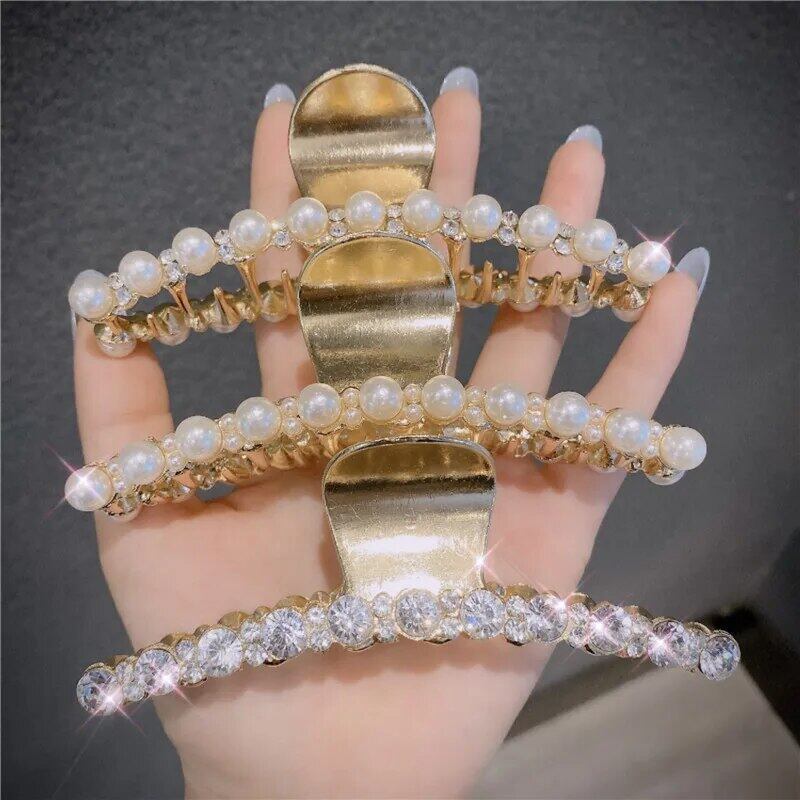 女の子のための韓国のヘアクリップ、エレガントなクリップ、ヘアクリップ、大きなラインストーン、パール、気質、頭の裏側