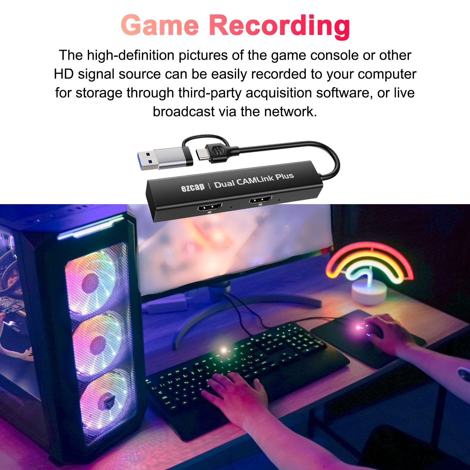手軽に接続できる小型設計で、持ち運びもラクラク。今ならすぐに注文可能!機能:カムコーダー、デジタル一眼レフ、アクションカメラ、モバイルデバイスなどからのデュアルチャンネル1080p高解像度信号をキャプチャします。