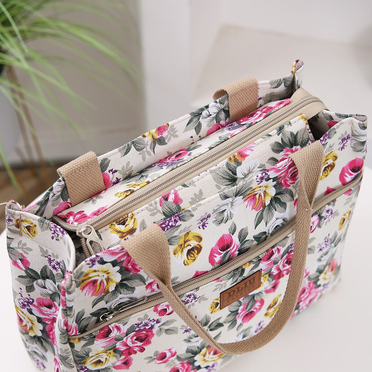 女性のための花柄のポータブルハンドバッグ,ピクニック旅行用のカジュアルな服装
