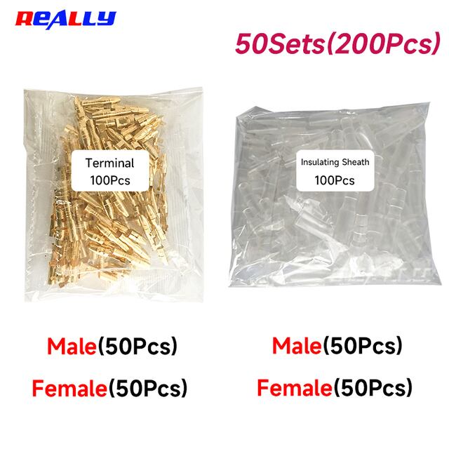ゴールド真鍮電線コネクタと絶縁のための車、女性と男性ブレット端子、4.0ミリメートル、50、100セット
