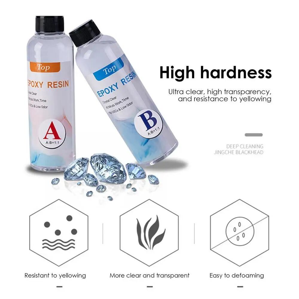 4.丈夫で気泡なし:このエポキシ樹脂接着剤キットは、樹脂型を丈夫にし、加工中に黄変しにくいように設計されています。