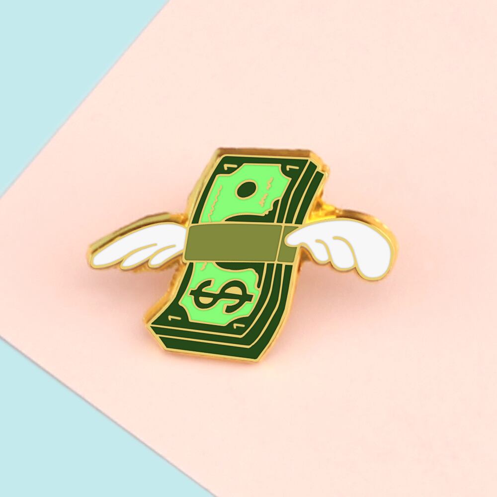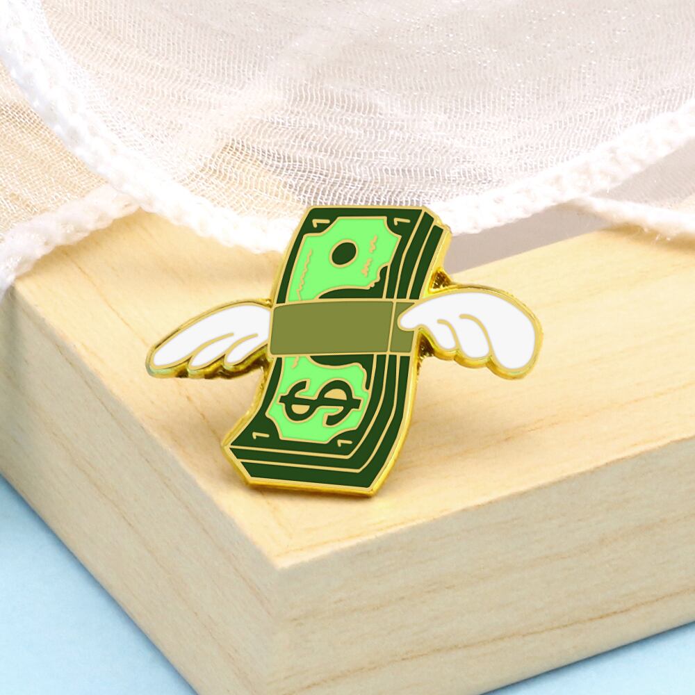 ユニークなフライングスイングマネーブローチクリエイティブダースドルラペルピンバッグデニムバッジ友達ギフトジュエリーアクセサリー