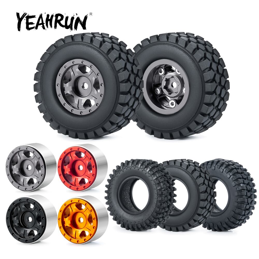 Yeahrun-メタルホイール1.0インチ,50/54mm,trx4m用ラバータイヤセット,同軸,1/18 1/24 rc