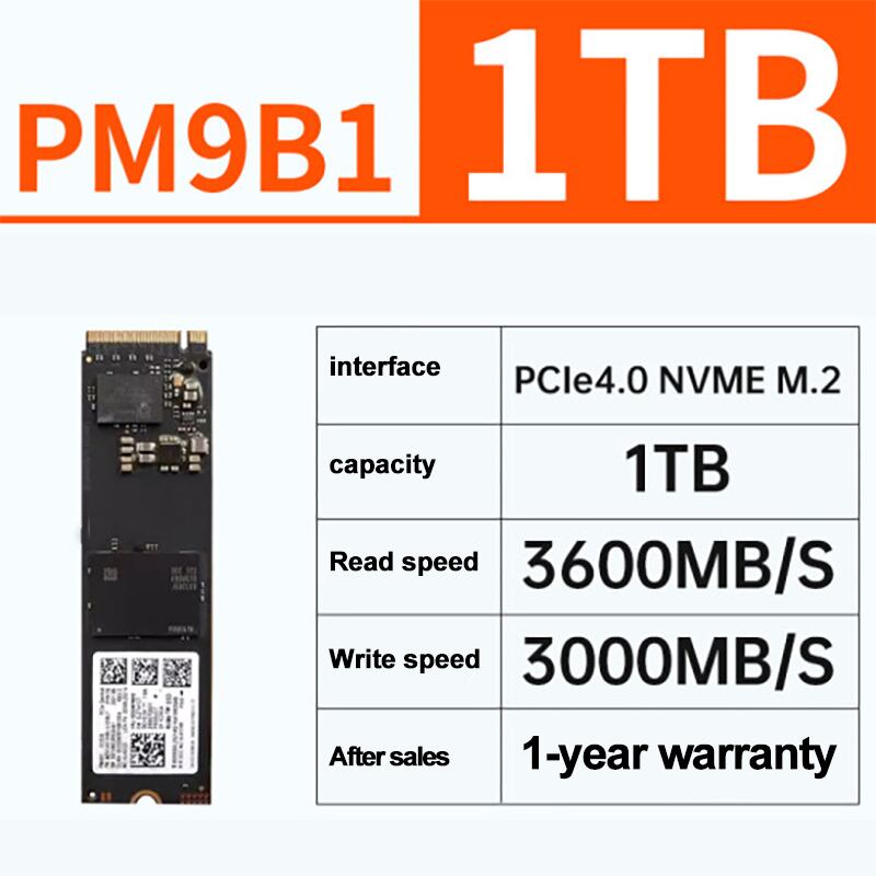 Samsung-PM9B1 GB内部SSD,512GB,1テラバイトMHz,pcie gen,4x4,nvme 2280 ssd,80mm, 2280