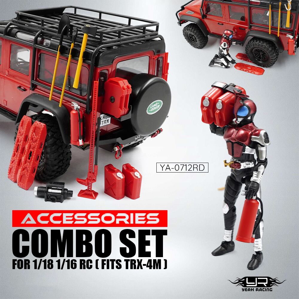 マイクロクローラーにぴったりの「yeahレーシングロッククローラーアクセサリーコンボセット」が登場!赤色のアクセサリーがリグにスケール感をプラスし、リアルな仕上がりを実現します。ウインチ、ジャック、ツール、消火器、オイルキャニスターと揃ったフルセットで、クローリングの楽しさがさらに広がります。重量を気にせず装着できるプラスチック製で、マイクロサイズならではのリアリティを演出。ぜひ、マイクロクローラーの魅力をグレードアップさせるアイテムとしてお試しください!そうレーシングロッククローラーアクセサリーコンボセット1/181/16rc(TRX-4M)#YA-0712RDマイクロクローラーでの使用を目的としたマイクロサイズのクローラーアクセサリーのフルセット!プラスチック製で作られており、重量をかけすぎずにリグにスケールのリアルさを実現できます。
