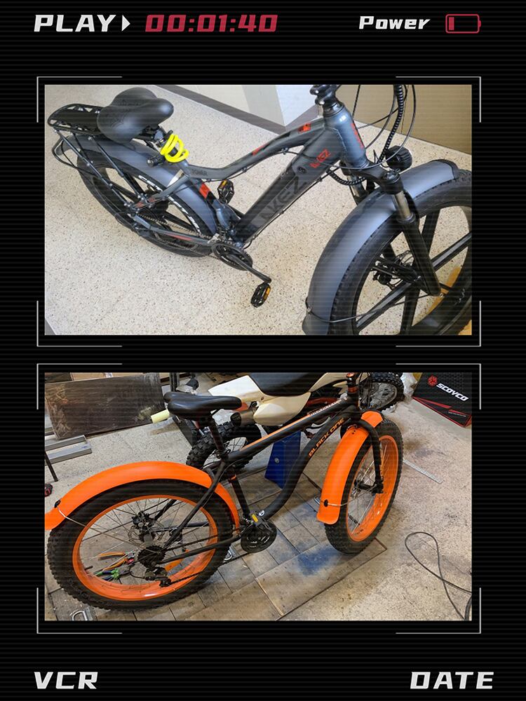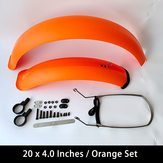 電動マウンテンバイクをより快適に、さらにスタイリッシュに乗りこなすために、高品質なフロントフェンダーとリアマッドガードが登場しました!錆びず、軽量で高強度なPC素材製で、装着もカンタン。あなたとバイクを汚れから守り、清潔に保ちます。さらに、角度調整可能で様々なバイクに対応。新色のオレンジ&グレーも登場し、より一層華やかに。バイクライフを快適に演出する必需アイテムです!-スノーバイクフェンダー26"20"24"ワイドタイヤ4.0ワイド110mm*自転車フェンダーは高品質のPC素材で作られており、軽量で高強度です。