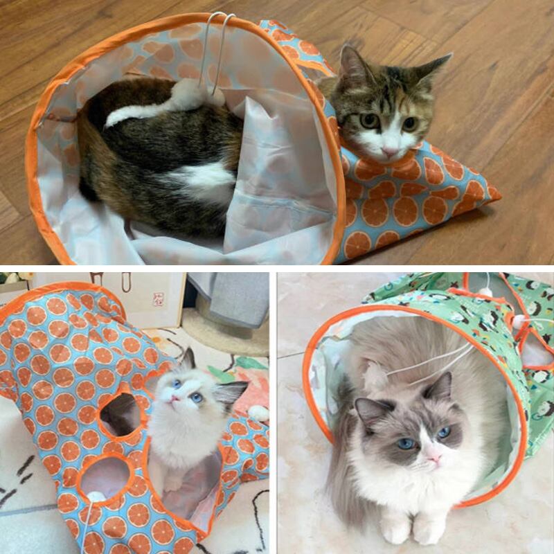 おうちの中でいつでも楽しめるサイズで、持ち運びも簡単。しかも、猫のトンネルは高品質なポリエステル素材で作られており、丁寧な縫製と細かい仕上がりが特長。猫ちゃんの快適さと安全を考えた設計で、耐久性も抜群です。