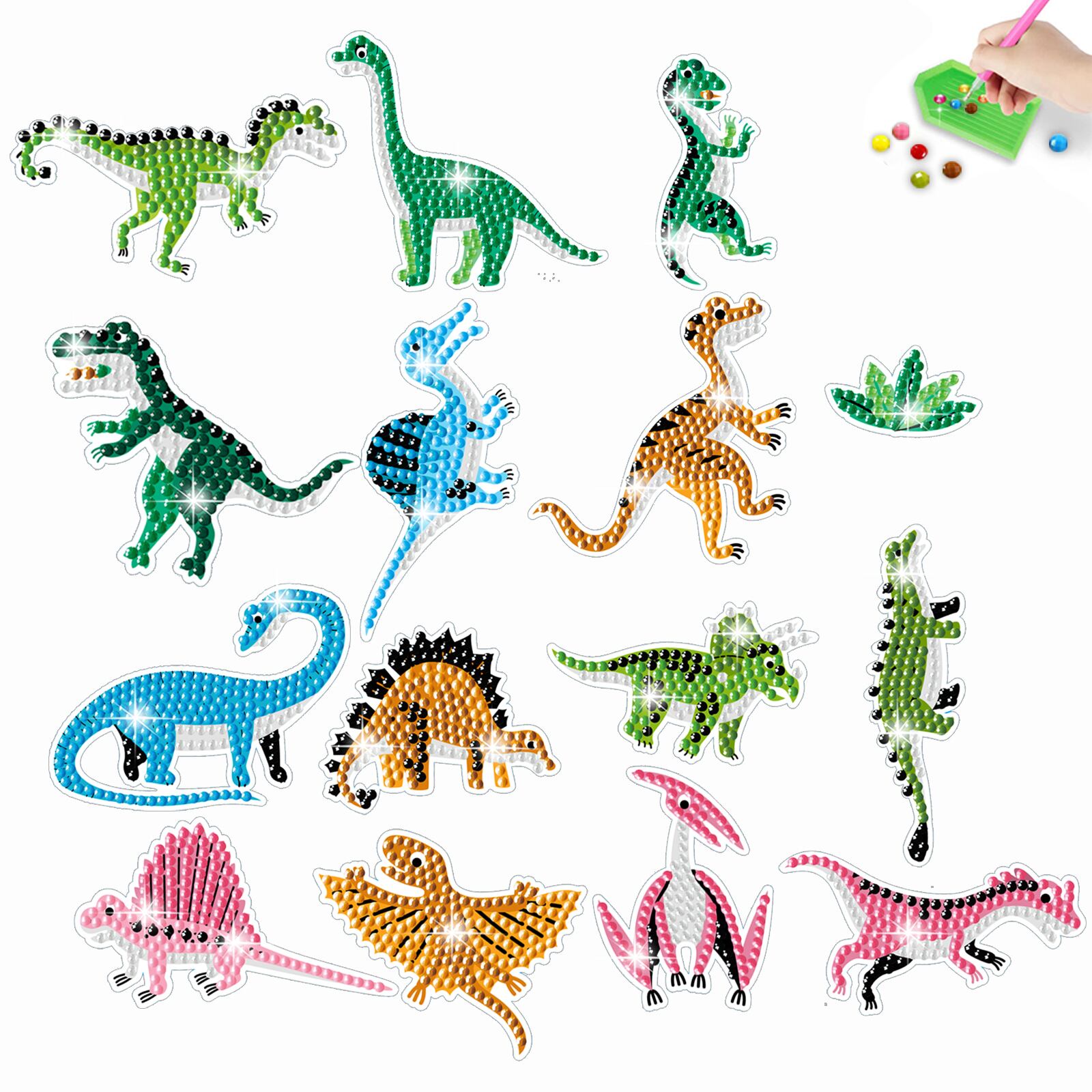 子供のための5dダイヤモンドペインティングステッカー、かわいい漫画恐竜、テーマ、工芸品、手作り、年齢6-12、ギフト