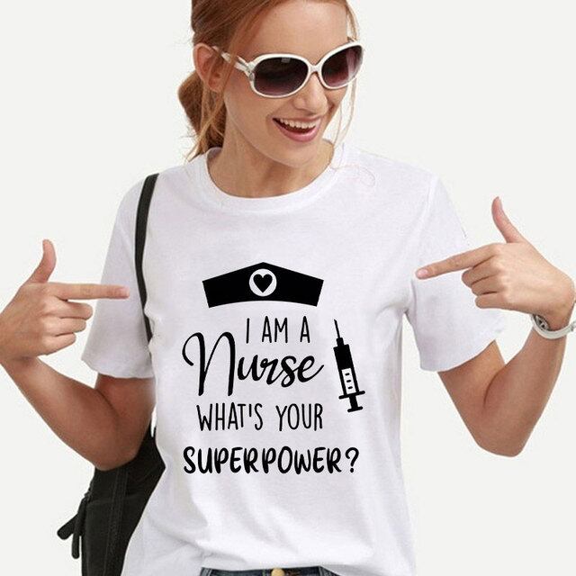 女性用半袖Tシャツ,ナースの服,スーパーパワー,グラフィックy2k,原宿,ファッショナブル