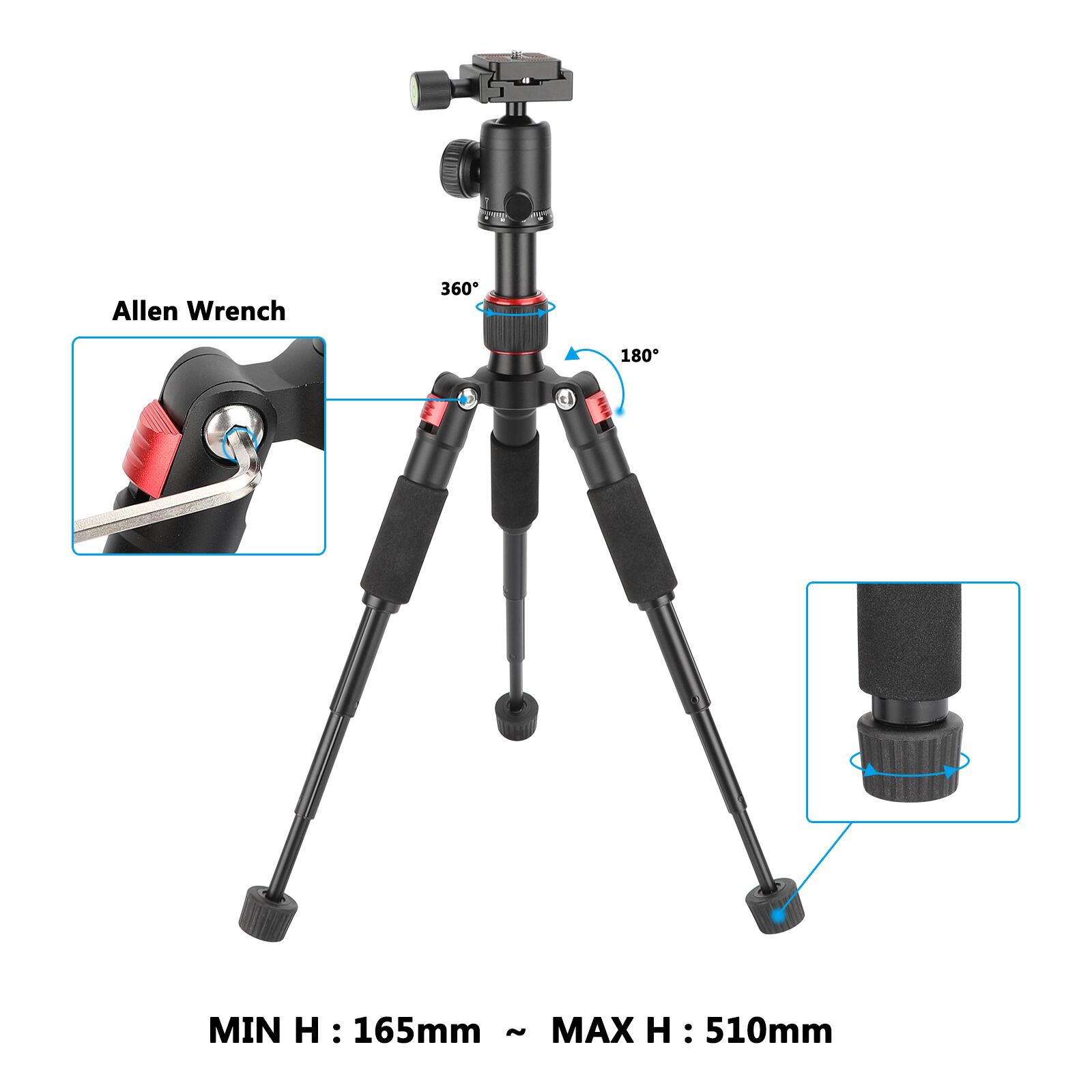 【革新的なポータブルミニ三脚】あなたのアウトドアや旅行をもっと豊かにする、必須アイテムです。デジタル一眼レフからカムコーダーまで、幅広い機種に対応する13ポンドの耐荷重で安心して使用できます。高度な機能満載で、正確な撮影位置を確保しやすいボールヘッドや独立したパニングベース、アルカタイプと互換性のあるクランプベース、さらに取り付けポイントも充実。軽量で使いやすいこの三脚があれば、マクロ写真もバッチリ決まります。さあ、写真撮影の可能性を広げる一歩を踏み出しましょう。製品のハイライト•耐荷重:13ポンド•最大高さ:20"•逆折り畳み長さ:6.5"•脚セクション:5•独立したレッグカバー、3つのレッグアングル•フリップロックジョイントとフォームスポンジを備えた脚ウォーマー•Arca型互換性のあるビルトインバブルレベル•360°ボールヘッド、直径1.1"•1/4"-20スレッドカメラマウント•ツイストロック付きセンターコラム•ゴムパッド入りの足•アルミ構造製品の説明この三脚は、家庭、スタジオ、または場所での使用に用途が広く、マクロ写真に最適です。