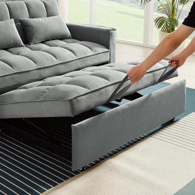 快適な座り心地を提供する高品質な素材と豪華なデザインで、贅沢なくつろぎをお楽しみください。引き出し式ソファ3in1スリーパーラブシートコンバーチブル、55インチ2人掛けソファベッド、スロー枕付き、リビングルームやオフィスに最適、グレーベルベットベルベット多機能スリーパーデザイン:ラブシートソファで究極の汎用性を発見してください。