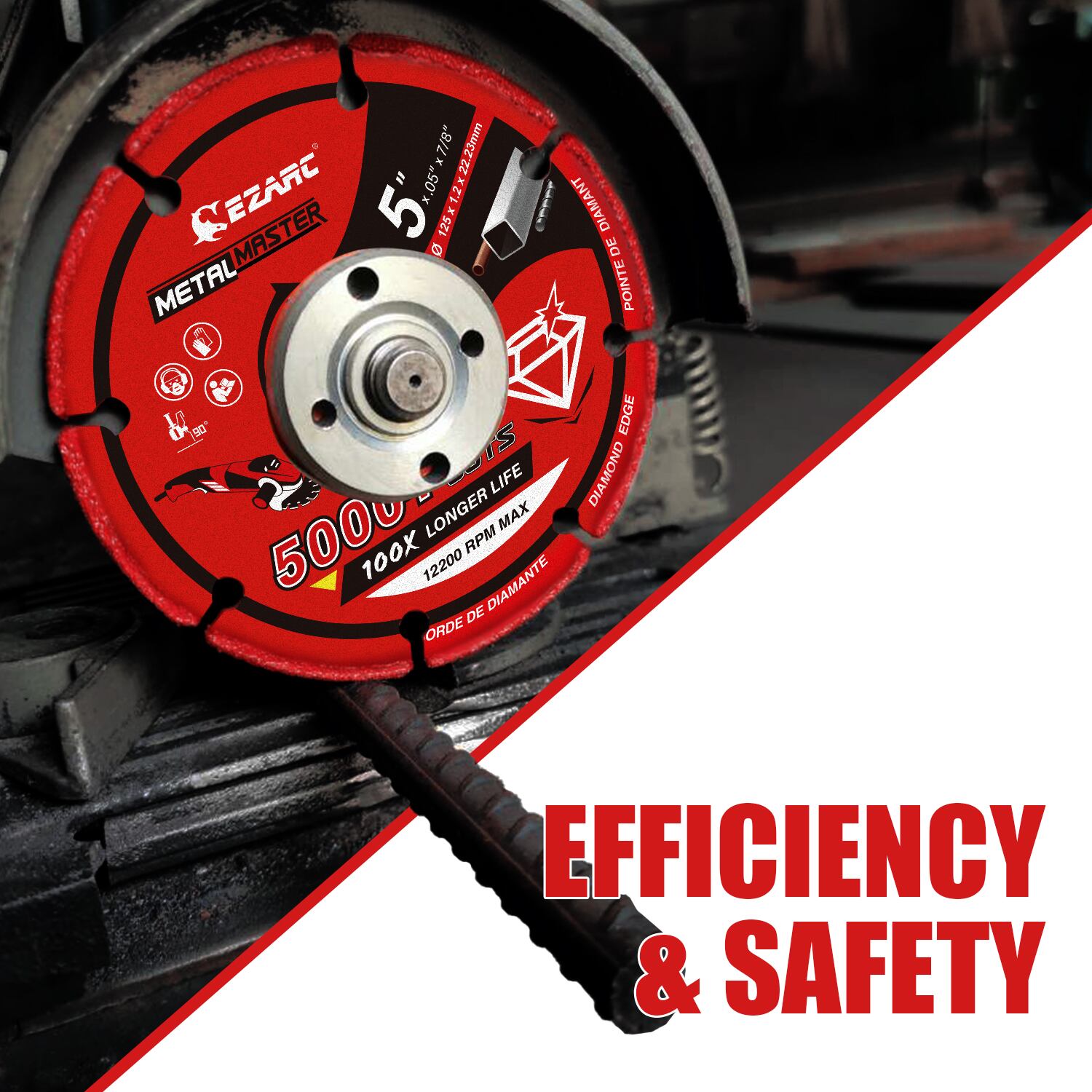 ezarcダイヤモンドカッティングディスクは、接着されたカットオフホイールと比較して、カットあたりのコストがはるかに低く、金属のカットが5,000以上多くなります。