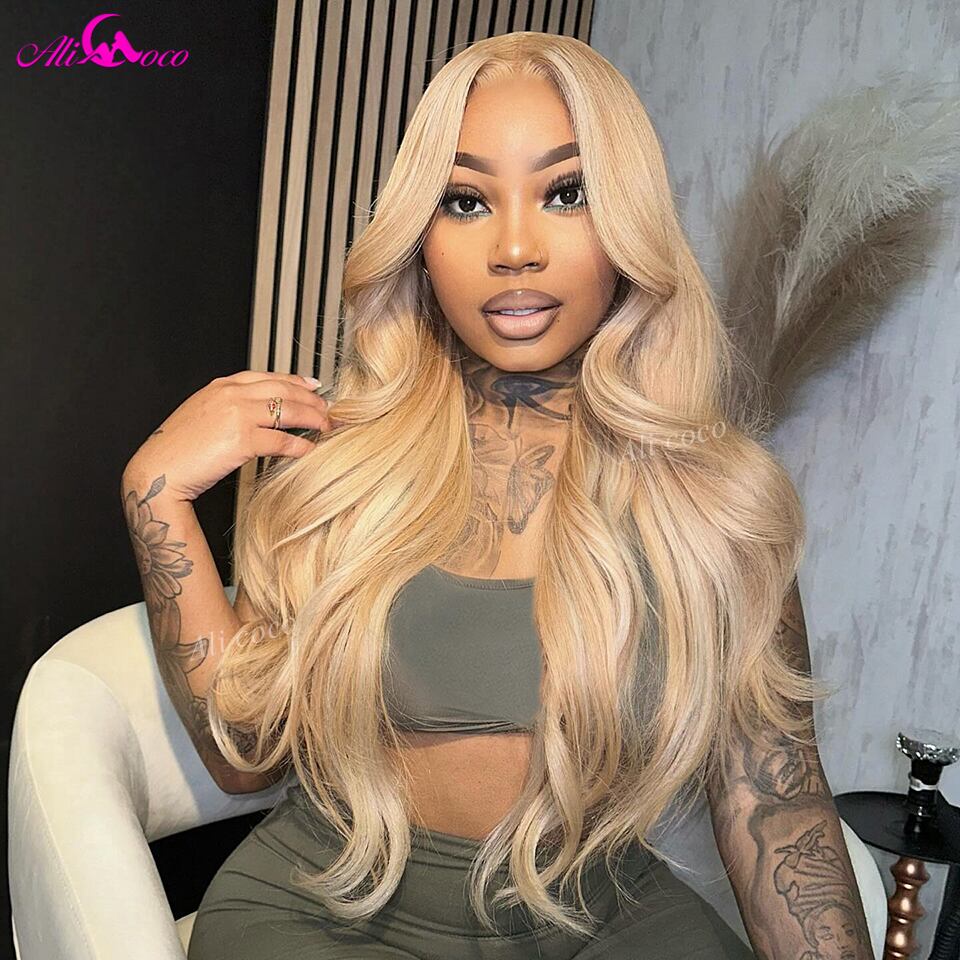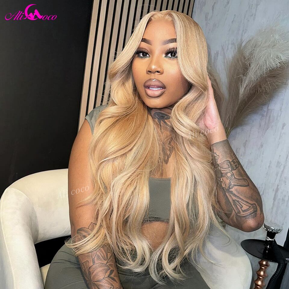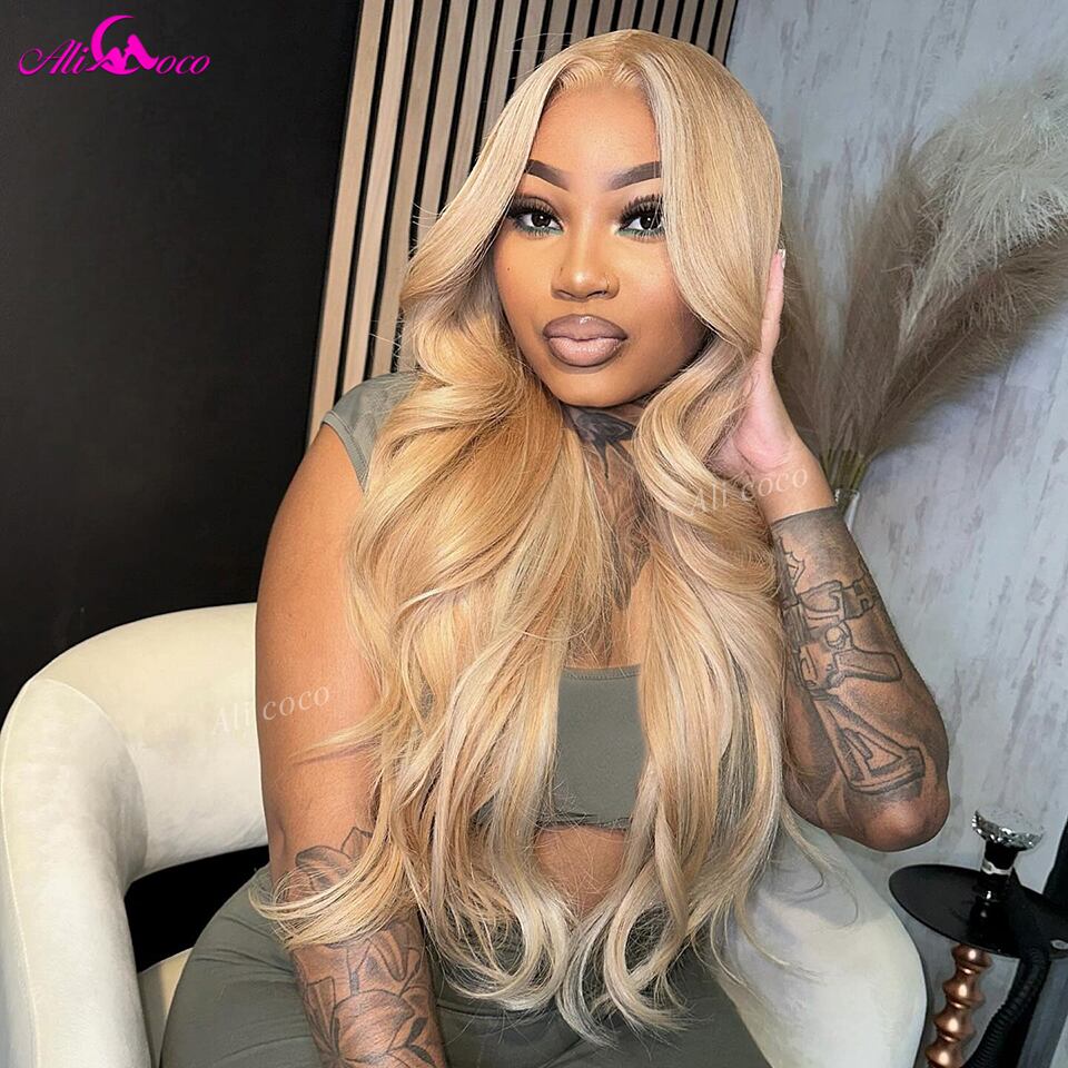ハニーブロンドレースフロントボディウェーブウィッグ、人間の髪の毛、事前に摘み取られた、接着剤なしのクロージャー、5x5、13x4、13x6