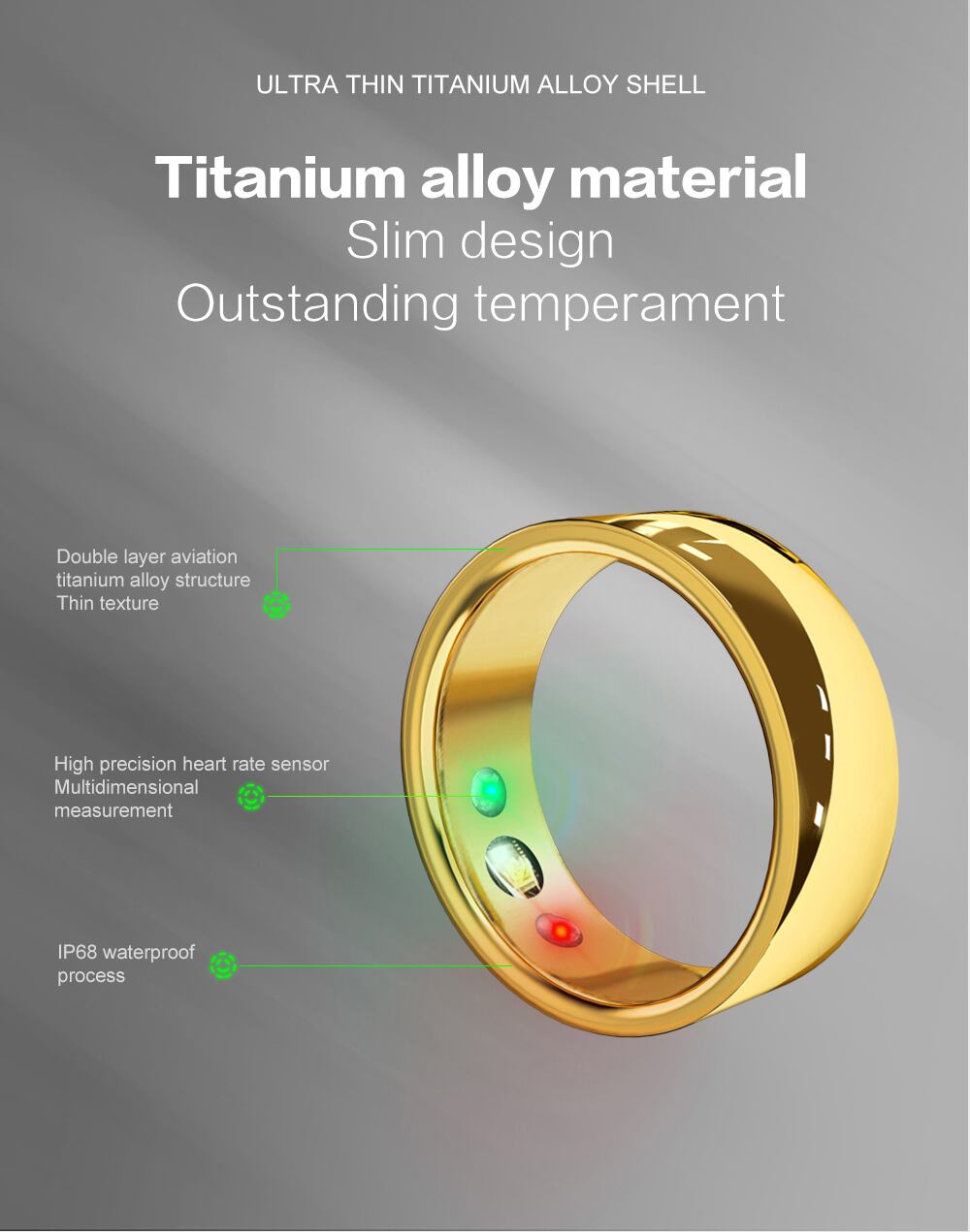 最新テクノロジー搭載のスマートスポーツリングは、あなたの健康管理をサポートします!カロリー消費から睡眠品質まで、様々なデータをリアルタイムでモニタリング。さらに、ランニングやヨガなど多彩なスポーツモード搭載。タフな防水設計で、いつでもどこでも活躍します。スマートフォンとの連携で、健康的な生活がさらに快適に。日常からスポーツまで、幅広いシーンで活躍するスマートスポーツリングで、新しい健康ライフを始めませんか?関数モーション測定:カロリー、歩数、マイルスリープモニタリング:20:00~8:00(12:00へ自動拡張)マルチスポーツモード:ランニング、サイクリング、縄跳び、フィットネス、ハイキング、ヨガ、ゴルフ、ダンス心拍数測定:サポート血圧測定:太陽光発電をサポート酸素測定:精度をサポート自動ヘルスモニタリング:サポートアクティビティ情報データストレージ:Otaupgrade:サポートハードウェア設定メインコントロールチップ:fr8016ha心拍数センサー:tianyihexin3605温度センサー:nanocoremicronst112cバッテリー:28mah、3.7/4.2vリチウムバッテリー光ppgアナログフロントエンド(ppgafe)hx3605アプリ:Google:jsrings、ISO:jsringBluetooth距離:3〜5メートル機能:プロダクトの説明:スマートリングは、ニアフィールドコミュニケーションを通じてスマートフォンに接続して機能の実行とデータ共有を完了できるファッショナブルなウェアラブル電子製品です。