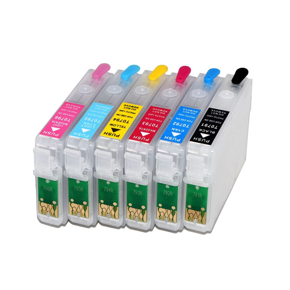 「エプソンアーティスト1430などのプリンター用、自動リセットチップ搭載の詰め替え可能インクカートリッジが、お手頃価格でご提供中です。豊富な支払い方法と配送オプションで、安心してご購入いただけます。品質に自信があり、製品到着後のサポートも万全。ぜひご検討ください。」エプソンプリンター用の詰め替え可能なインクカートリッジ,T0791-T0796,1430,1400,px700w,px800fw,p50,px830fwd製品:自動リセットチップ付きの詰め替え可能なインクカートリッジカートリッジコード:79T0791-T0796(購入前にインクカートリッジ番号をご確認ください。