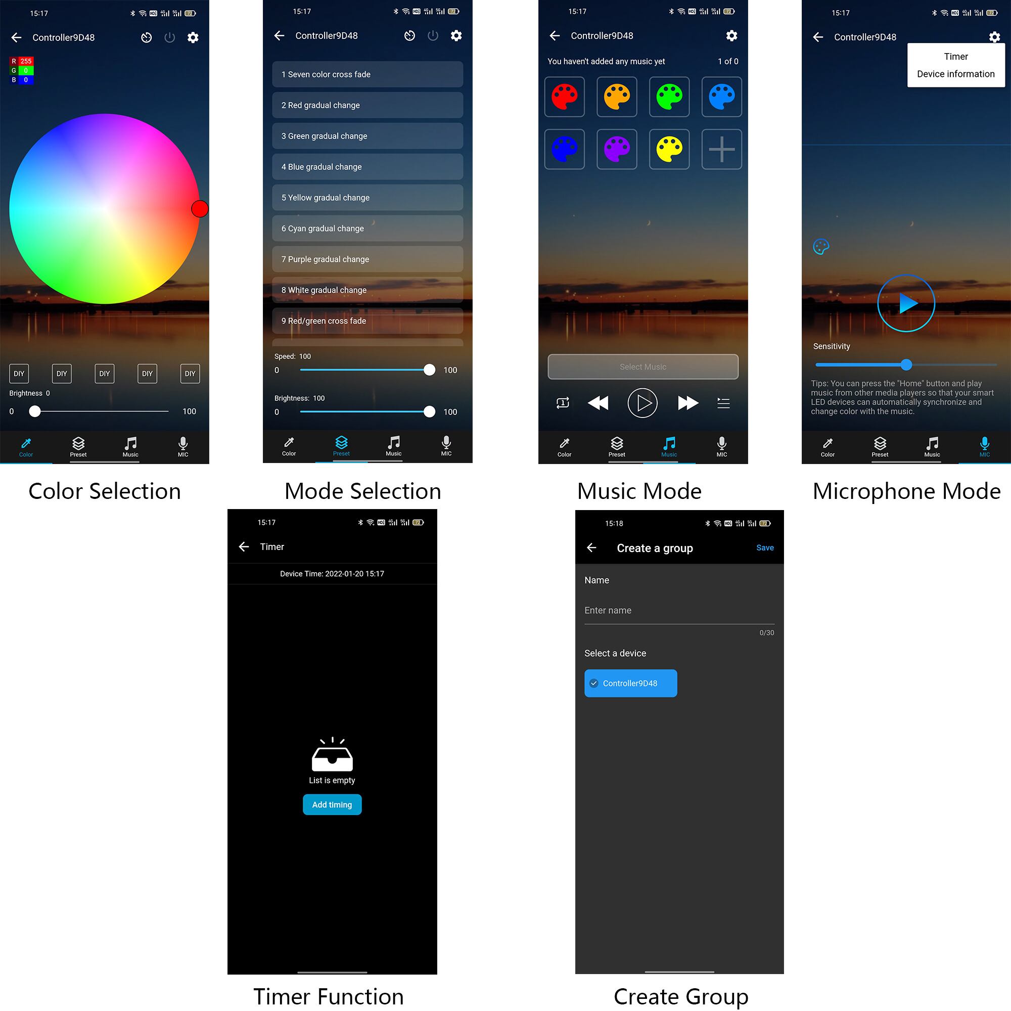 最新のBluetooth対応ミニRGBコントローラーは音楽と連動してLEDライトをコントロール可能!20mのリモート操作距離で、楽曲のリズムに合わせて色と明るさが変化し、スマホのソフトウェア言語に自動変換可能。5秒でコントローラーと自動接続し、簡単操作で楽しい光のアレンジメントを!MiniRGBBluetooth-compatibleControllerMusicLEDLightStripControllerforRGBTapeLightsSmartAPPControlDC5V12V24VUSBController:Canonlybeusedfor5VRGBLEDstripLight.DCController:Canonlybeusedfor5-24VRGBLEDstripLight.Tutorialsforuse:1.Download"ZENGGE"APPfromAppleappstoreorGoogleplaystore(Mobilephoneversionrequired:ios9.0orabove/Android4.4orabove)2.Turnonyourphone'sBluetoothandlocationswitch(makesurenootherdevicesareconnectedtoBluetooth)3.Open"ZENGGE"App,itwillconnecttothecontrollerautomatically.4.ChangingtheSortingTypes(ifneed):LongpressthedevicenameontheAPP→DeviceInformation→SortingTypesProductSpecificationAPPName:ZENGGEAPPLanguage:Chinese,English,German,JapaneseMobileVersionRequirement:Android5.0orIOS9.0orhigherLEDdrivertype:ConstantvoltageMOStubeLEDchannel:GRBInputVoltage:DC5-24V/USB5VMaximumpower:5V-30W,12V-36W,24V-72WLimitedcontroldistance:20m(openarea)TotalLength:DC-17.5cm,USB-51cmWorkingtemperature:-20~+45℃Connectionmethod:DC,USBControlmethod:APPProductFeature1.TheLEDBluetooth-compatiblecompatiblecontrollercontrolstheremotedistancedirectlythroughthemobilephone2.Itcanreach20mwithoutsetting,easytoconnectandopenthesoftware3.Automaticallyconnecttothecontrollerwithin5seconds4.Flowingmusicrhythmchanges5.Brightnessandspeedadditionandsubtraction6.Thetextdisplayedbythesoftwareissubjecttothephonelanguage7.SetupautomaticconversionbetweenChineseandEnglishPackageInclude1*RGBLEDStripLightController(notincludeLEDstriplight,powersupply)window.adminAccountId=2672594048;
