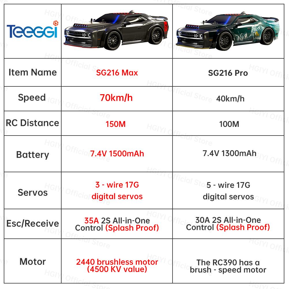 注:1.ブラシレスモデル:sg216max。