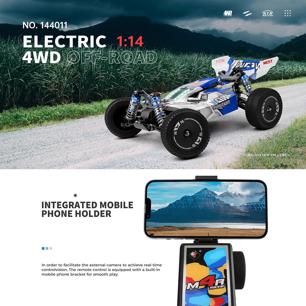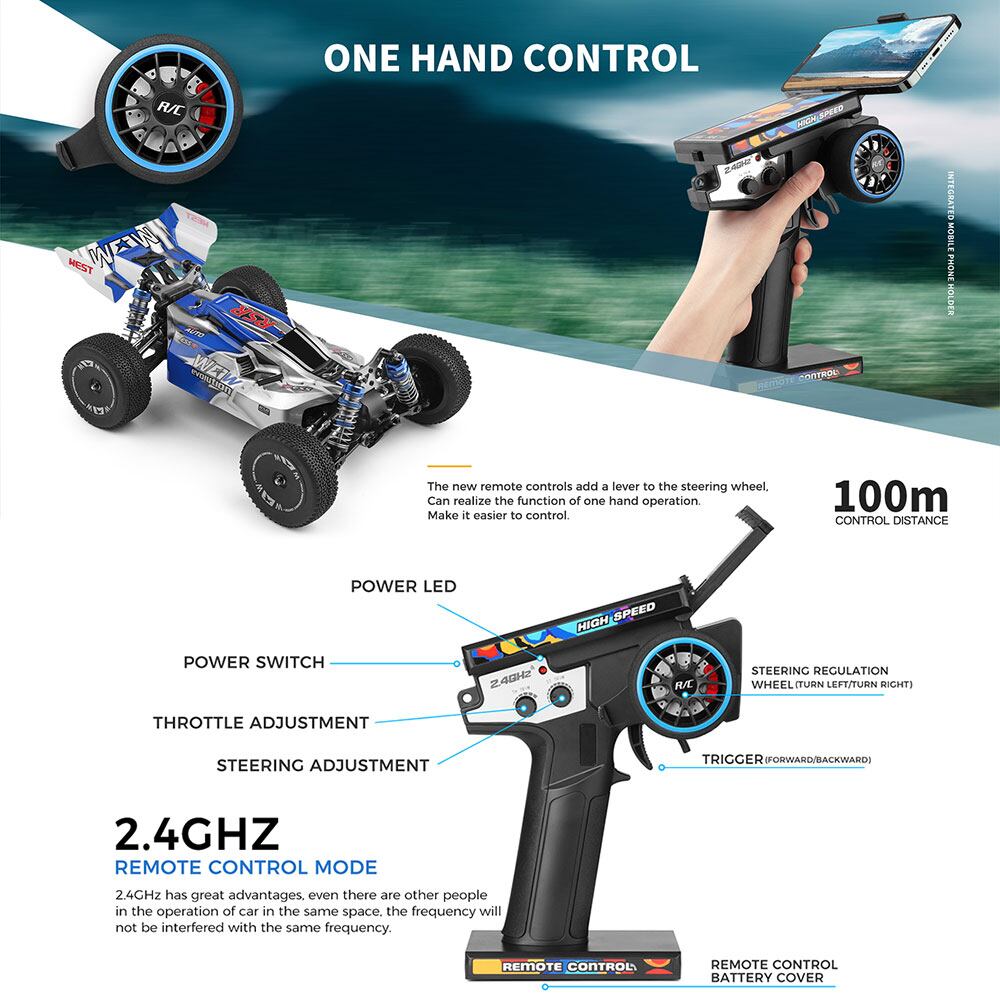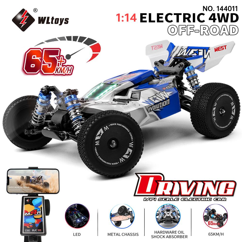 Wltoys-子供用の高速オフロードレースカー,リモコン付き,高速,144011, 144001, 65km,h,2.4g,4wd
