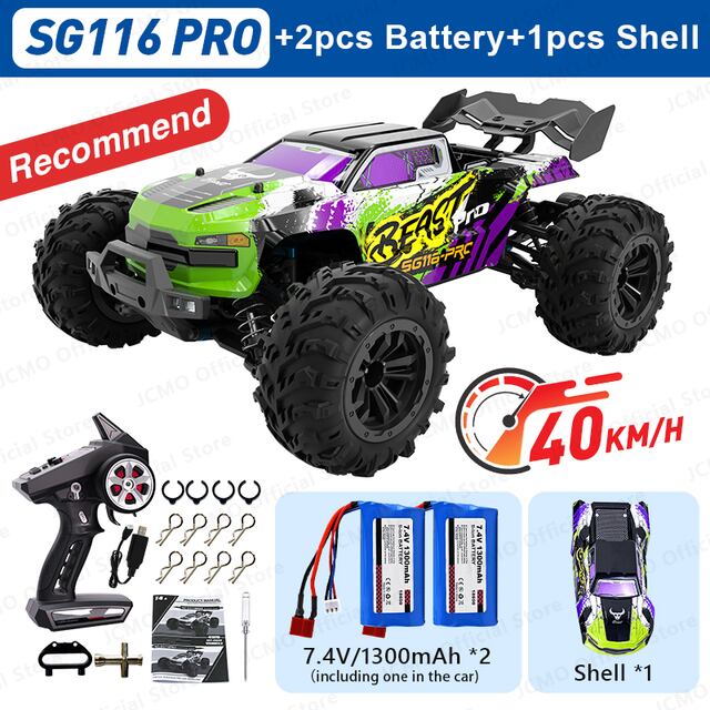 Sg116max高速レーシングカー全地形対応|比率|ブラシレスモーター|オフロードシャーシブラシレスモーターsg116maxフロントとリアの4つの駆動力設計を採用しており、ブラシレスモーター、強力な電力制御、大きな独立した衝撃を備えており、あらゆる種類の単純な粗い道路セクションに対応できます。