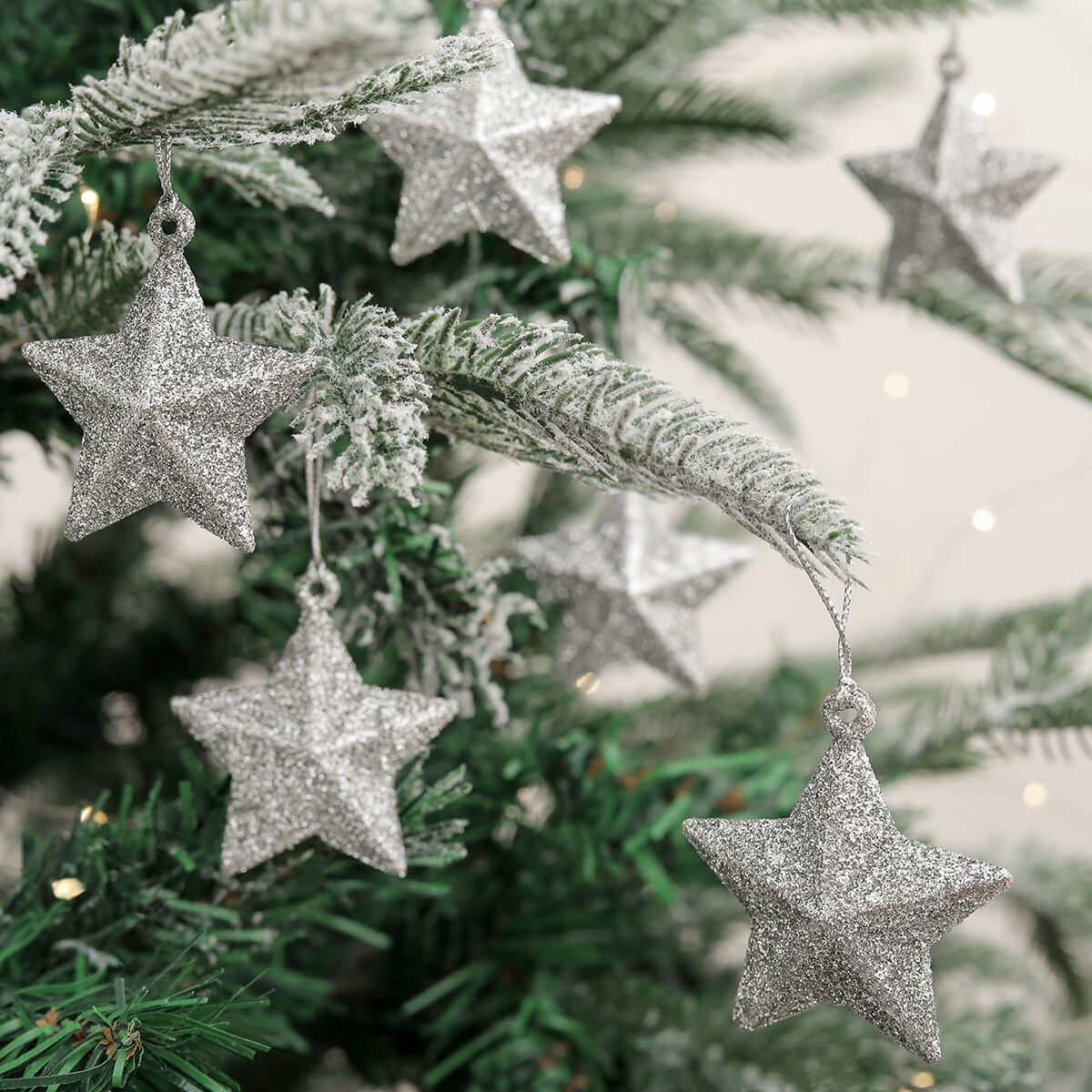 クリスマスの木のための5つの先の星のペンダント、装飾的なトランペット、キラキラの配置、6個
