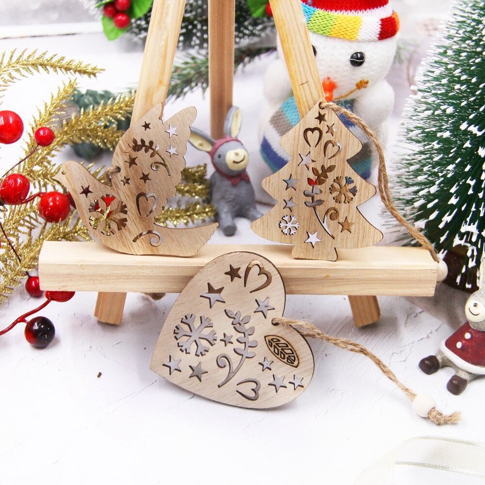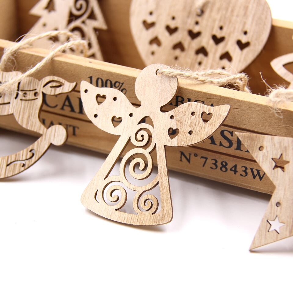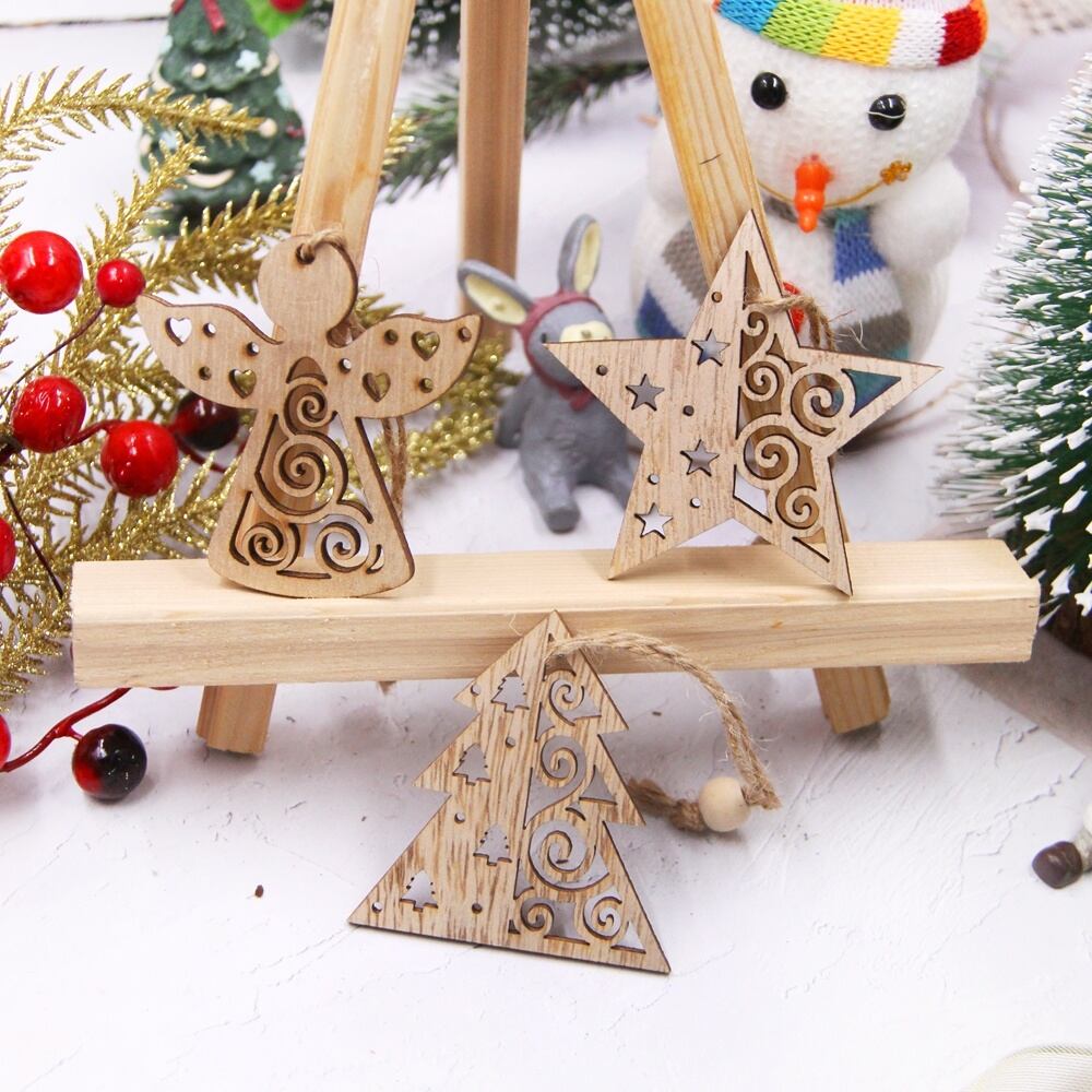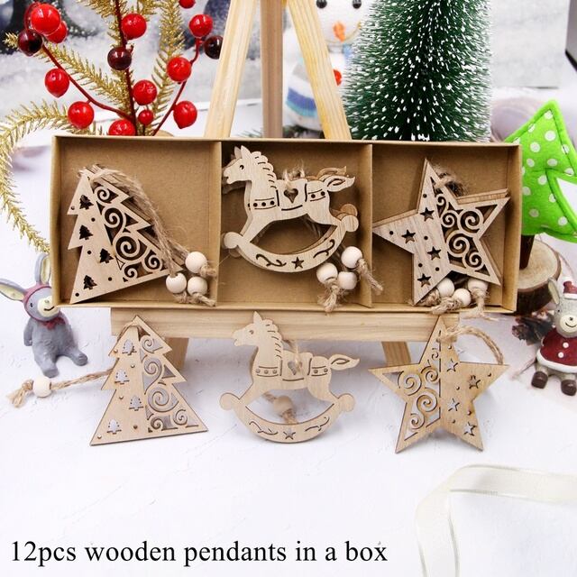 クリスマスツリーデコレーション、中空ツリー、スター、天使、子供のためのハンギングオーナメント、DIY絵画工芸品、1箱あたり12個