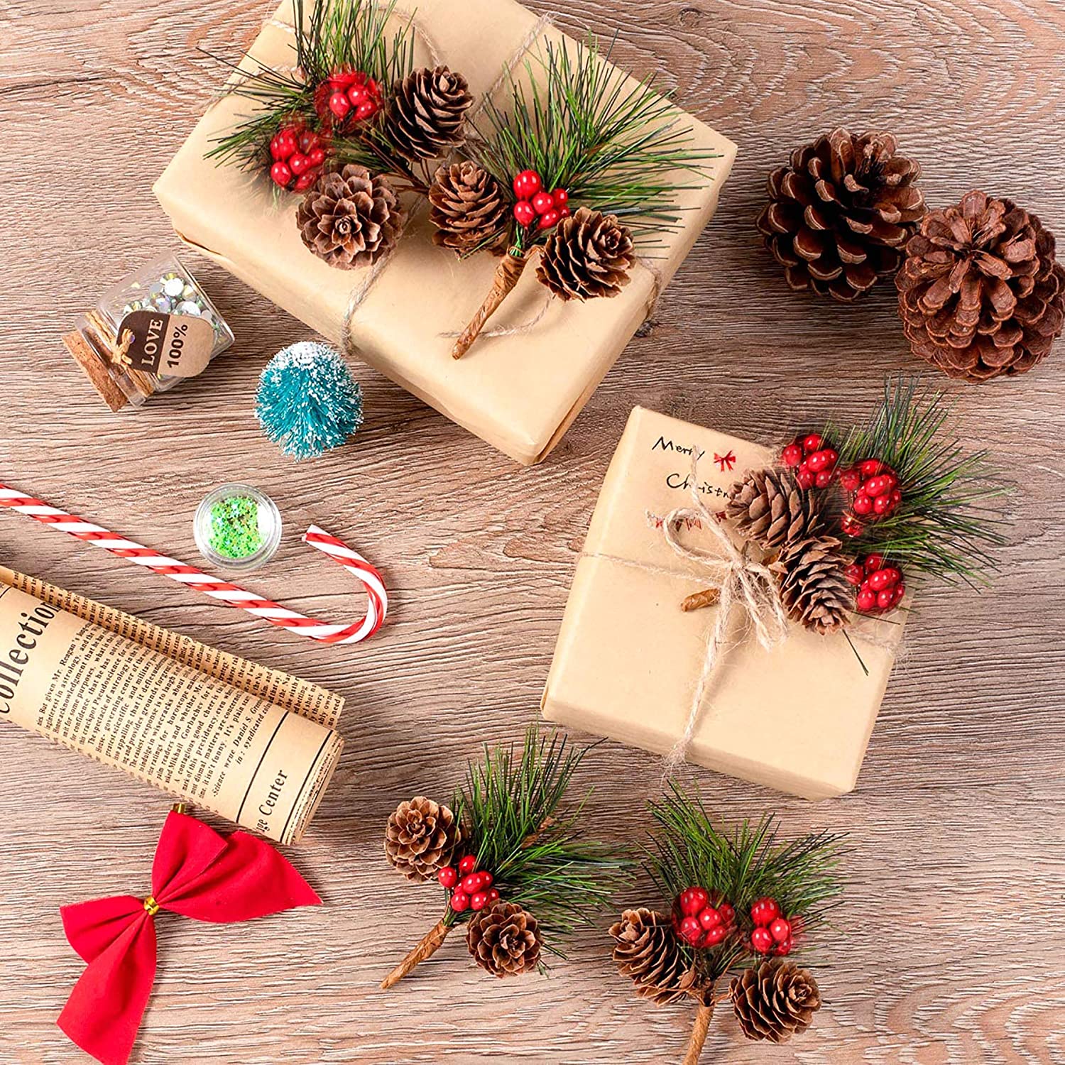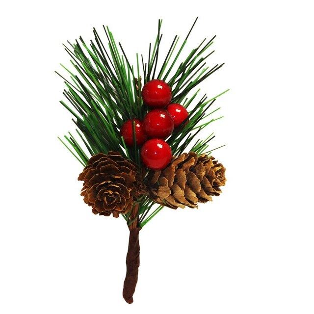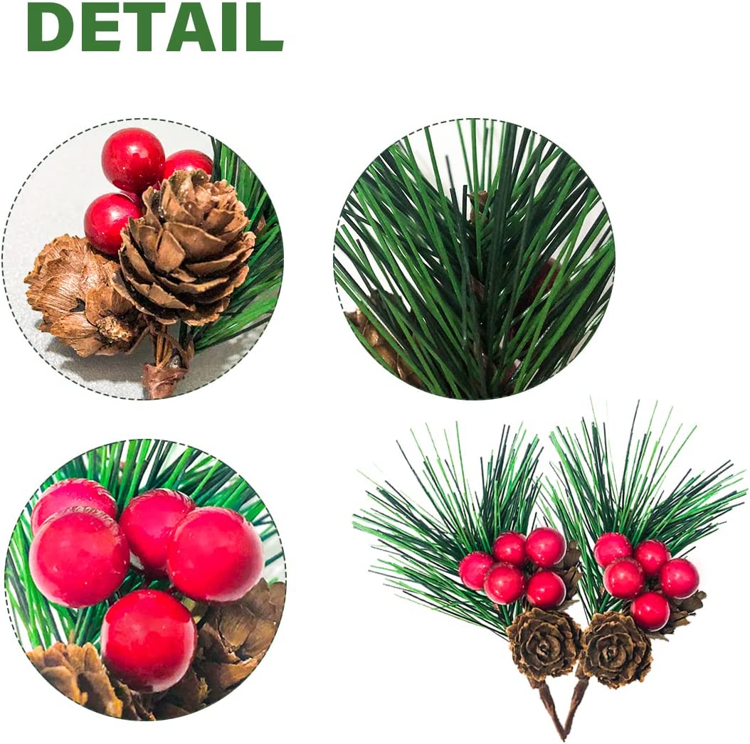 クリスマスミニピッソンズ、松の針の枝、人工赤の灰、クリスマスの木の花輪、DIYクラフトギフトの装飾、10個