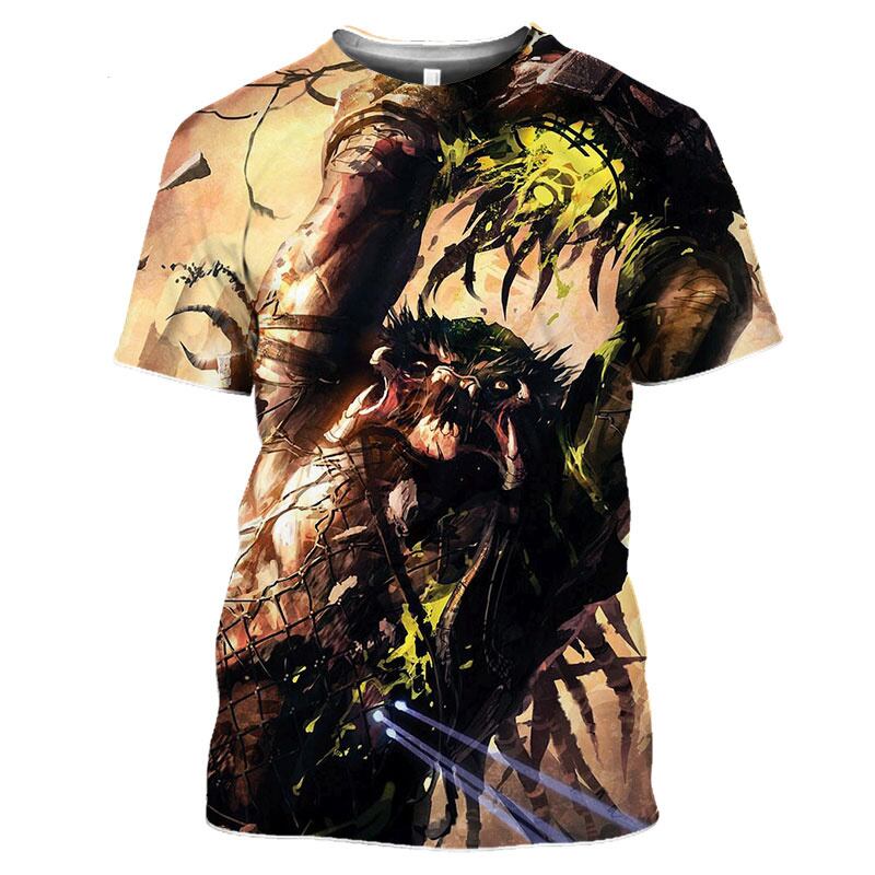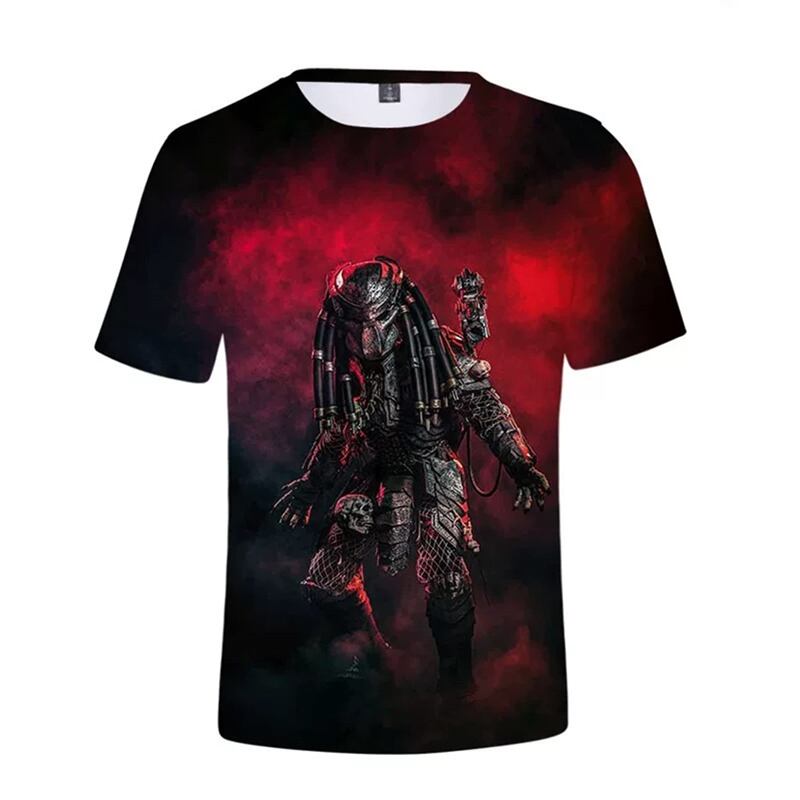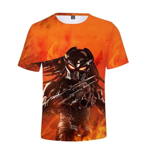 男性のプレデタープリントTシャツ,3Dホラー映画,クールなストリートウェア,半袖,速乾性のTシャツ,子供のファッション,新しい夏