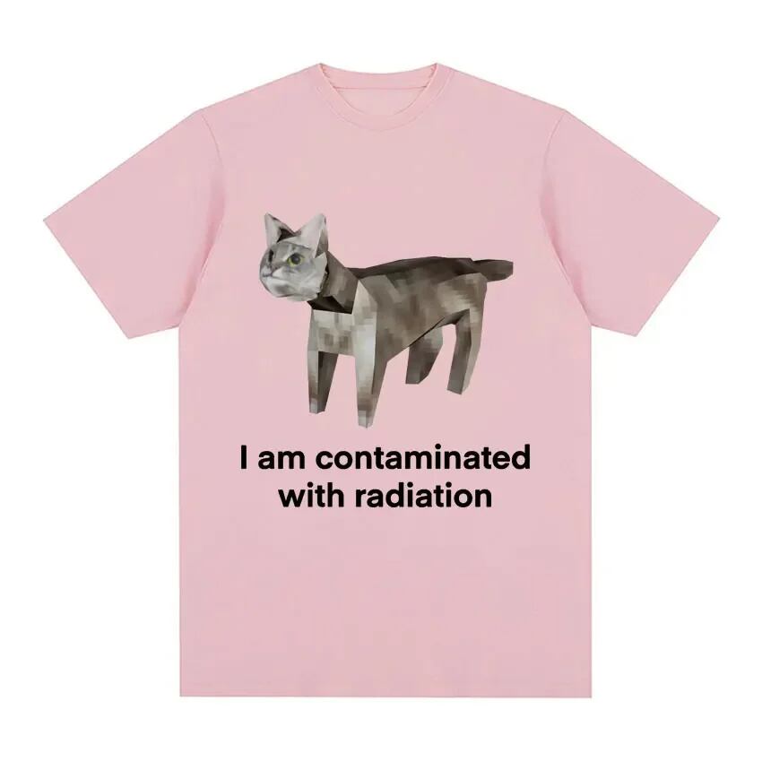 男性と女性のための面白い猫のTシャツ,印刷された汚染が付いた純粋な綿の夏服,タッチスクリーン,ルーズで特大のストリートウェア
