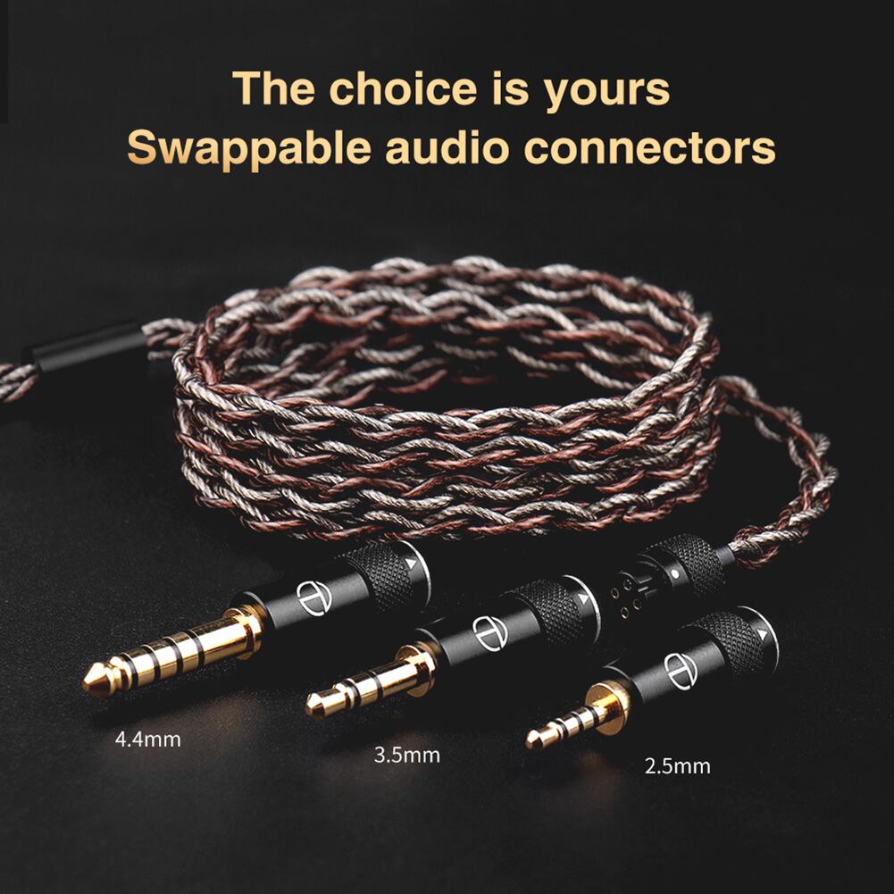 オーディオプレーヤーのインターフェースに応じて、3.5mmシングルエンド、2.5mmバランス、または4.4mmバランスオーディオプラグから選択でき、さまざまな設定に互換性と柔軟性を提供します。
