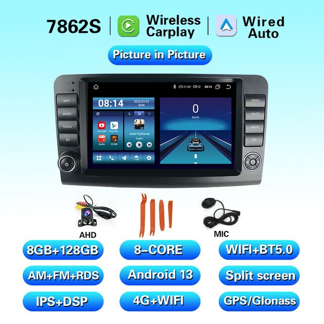 Lelv-Androidカーラジオ,9インチ,4G,GPSナビゲーション,WiFi,Dspマルチメディア,カメラ,メルセデスベンツクラスw164車用