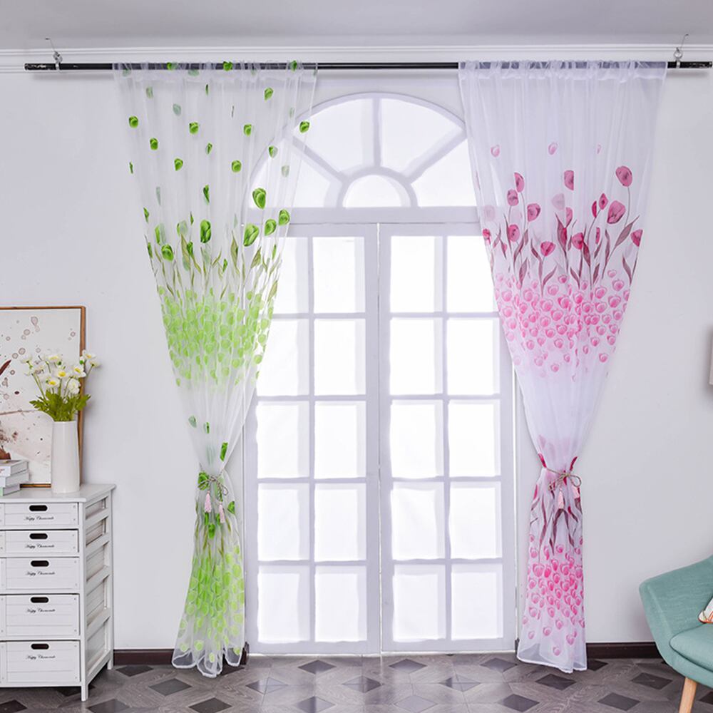 装飾カーテンはロッドカーテンを着用します半透明の窓スクリーン透明なボイル窓カーテンチューリップ印刷カーテン機能:100%新品で高品質1.スタイリッシュでユニークなデザイン。