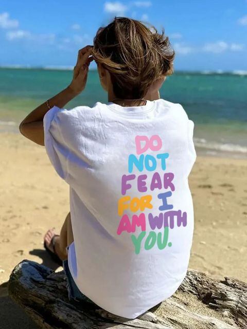 カラフルな文字,プリント,通気性のある生地,快適な女性用半袖Tシャツ