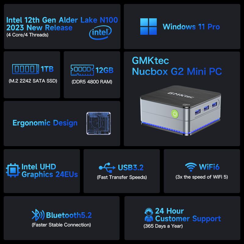 Gmktec-ミニPCG2,Windows 11 pro,intel 12th Gen,alder Lake n100,ddr5,12gb ram,5