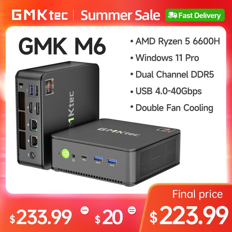 Gmktec-ミニPCm6 amd ryzen 5 6600h nucbox amd radeon™窓11プロ,wifi,6e,USB,4.0, 66