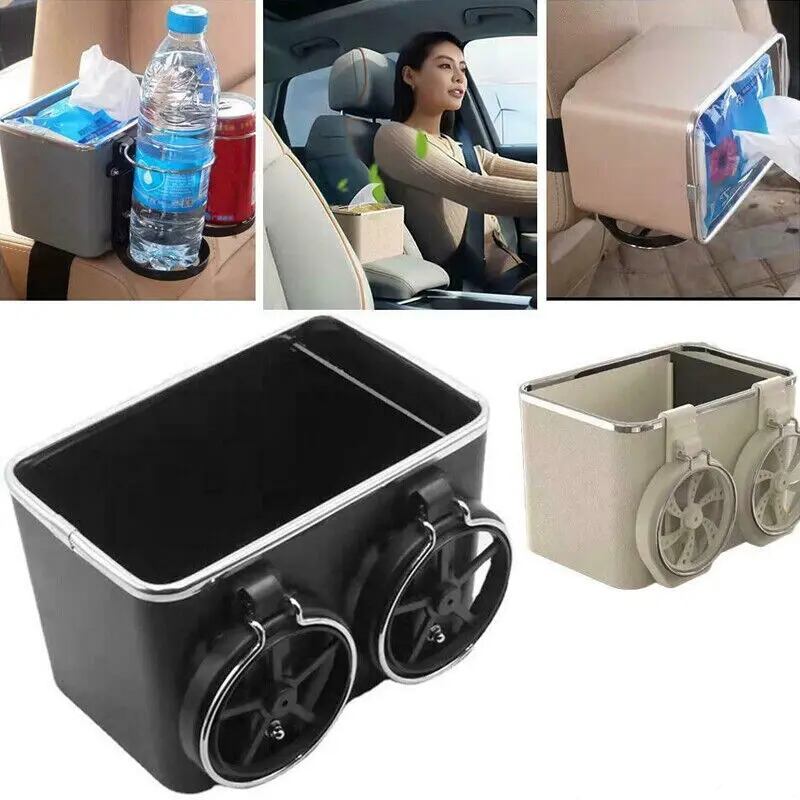 多機能中央収納ボックス,カバー付き収納ボックス,車のオーガナイザー,ティッシュボックス,リアシートウォーターカップ,カーポンプ