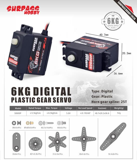 ベアリングタイプ:1bb;S0600Mトルク:4.8vで7kgf.cm、6.0vで8kgf.cm。