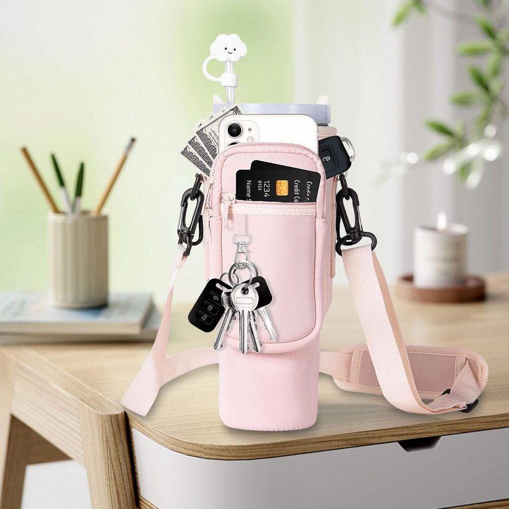 3.便利なショルダーストラップ:ウォーターボトルバッグには、どこにいても簡単にウォーターボトルを持ち運ぶことができるショルダーストラップが付いています。