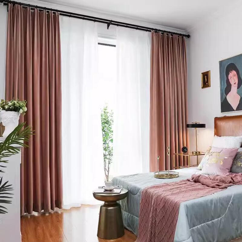女性のためのモダンなライトカーテン,防滴ピンクベルベット,数単色,厚く,真の,黒い色,甘いピンクのシリーズ,シンプル,軽い,モアディ