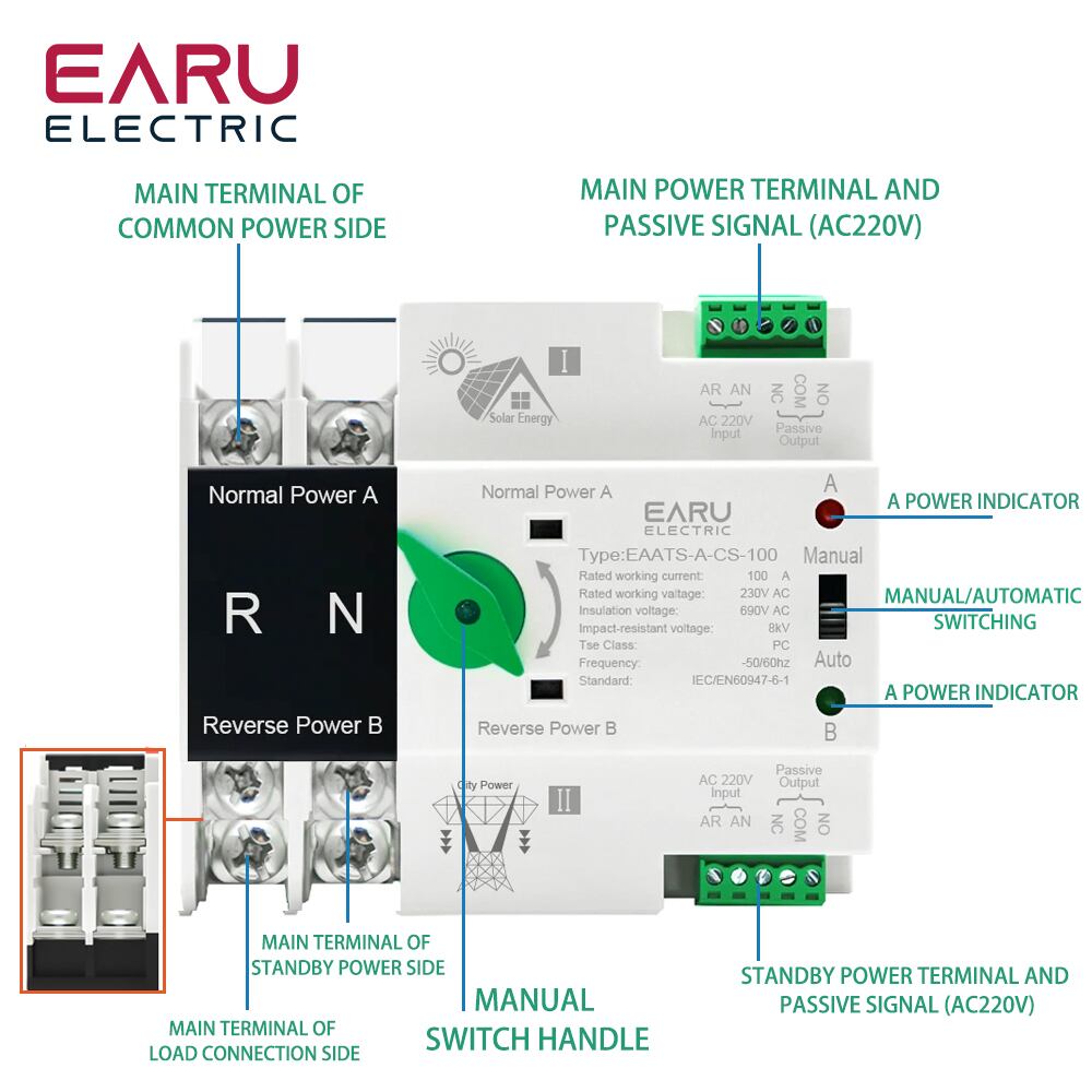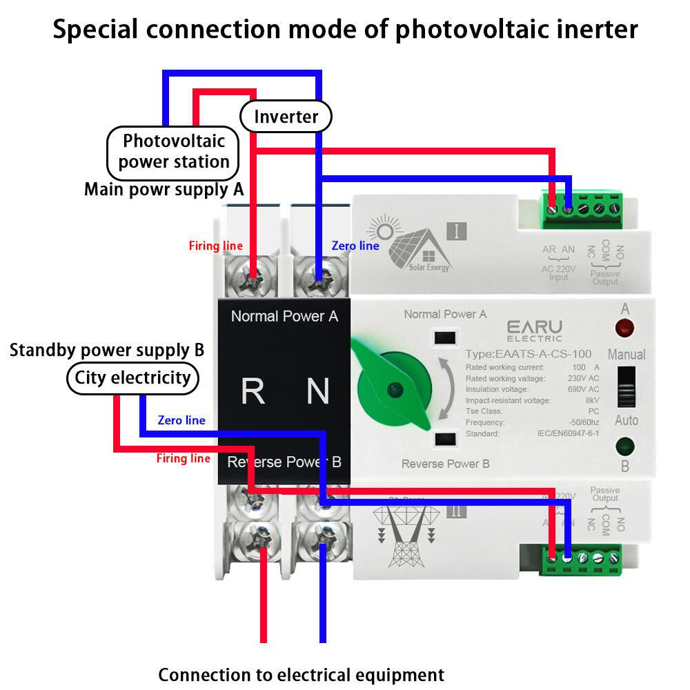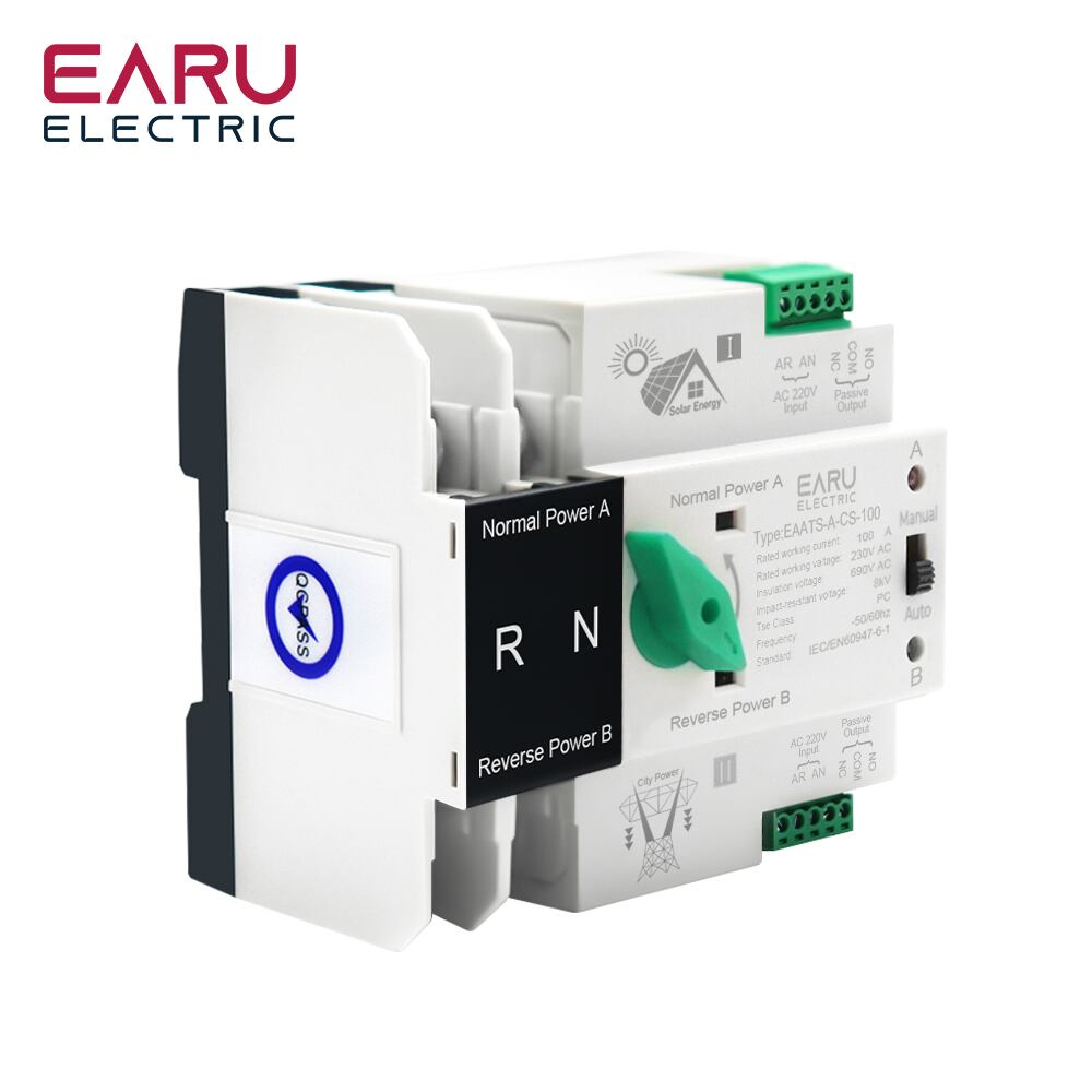 デュアルパワー自動転送セレクタースイッチ、無停電、レールはpvおよびインバーター用、2p、4p、100a、220v、110v