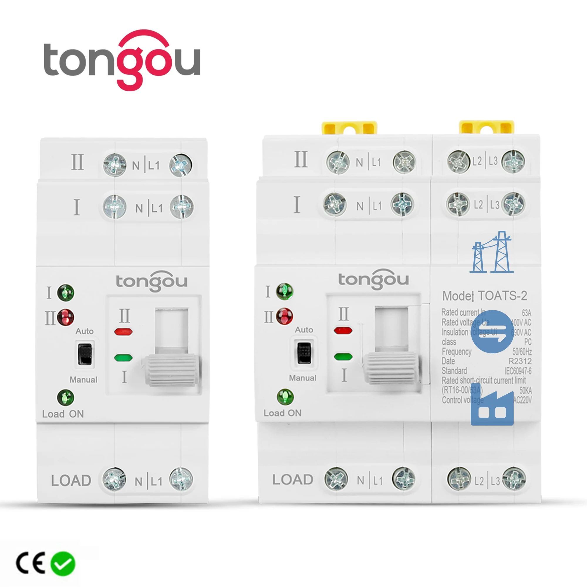 Tongou-デュアルパワー自動転送スイッチ、無停電電源スイッチ、電気セレクター、DINレール、2p、4p、ats、63a、新規