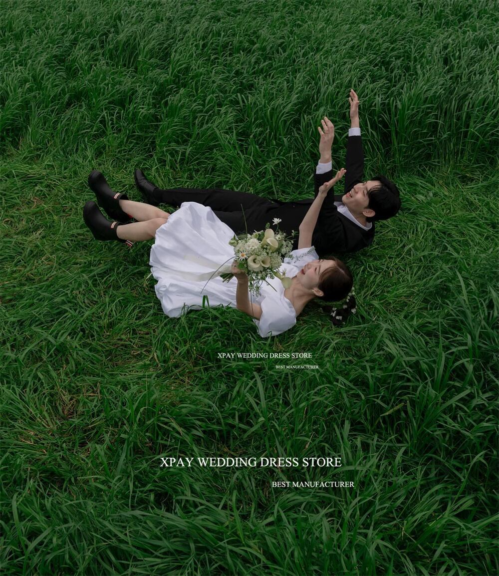 XPuguffy-半袖のふくらんでいるドレス,背中の開いたドレス,ラウンドネック,プリンセスドレス,韓国の写真撮影,膝上