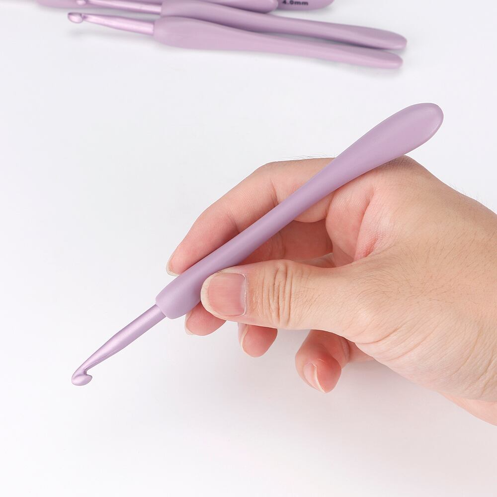 【滑らかなアルミかぎ針編みフック】かぎ針編みのフックの実際の金属部分は紫色の高品質アルミニウムで、金属はマットで、糸に引っかかったり裂けたりしません。