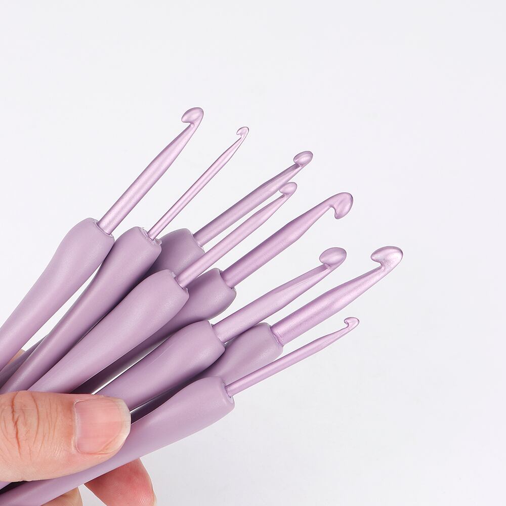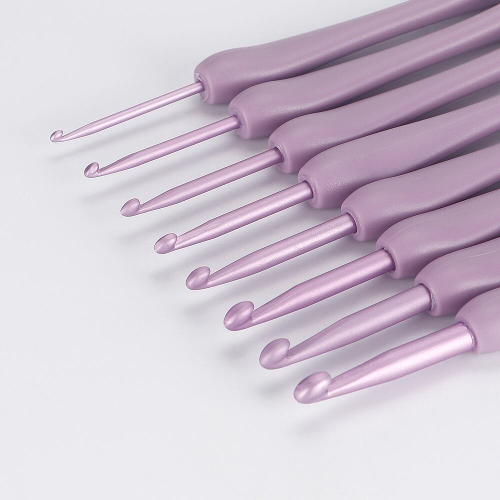 手作りの紫色のかぎ針編みの糸,2.5〜6.0mmのニット用の軽量アルミニウム針のセット,大工仕事用,8個。