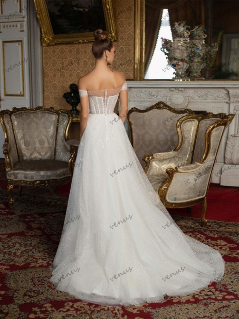 裸の肩のウェディングドレス、Aラインブライダルガウン、チュールのティアードローブ、フォーマルなパーティー、エレガント、2024