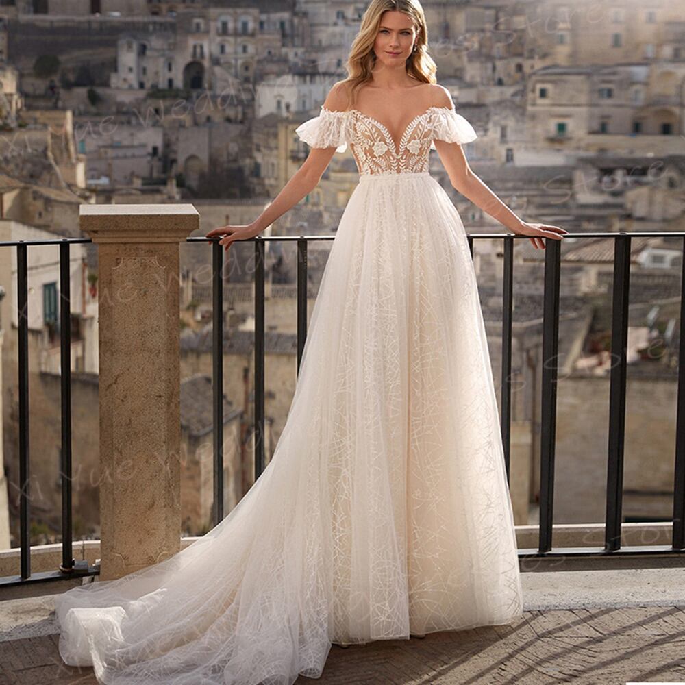 女性のためのモダンなウェディングドレス,美しいレースのアップリケ,セクシー,裸の肩