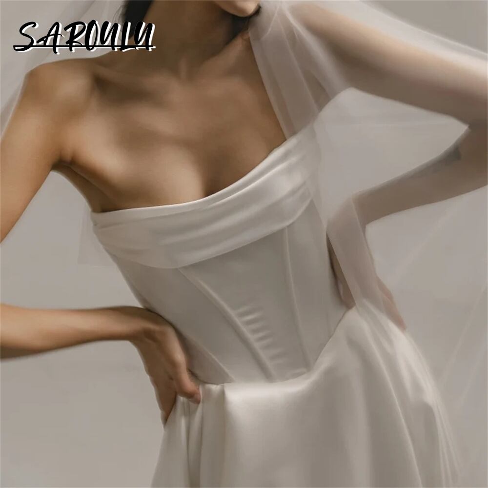 女性のためのシンプルでエレガントなサテンのウェディングドレス,コルセット付き,サイドスリット,ストラップレスドレス,カスタムメイド,高品質