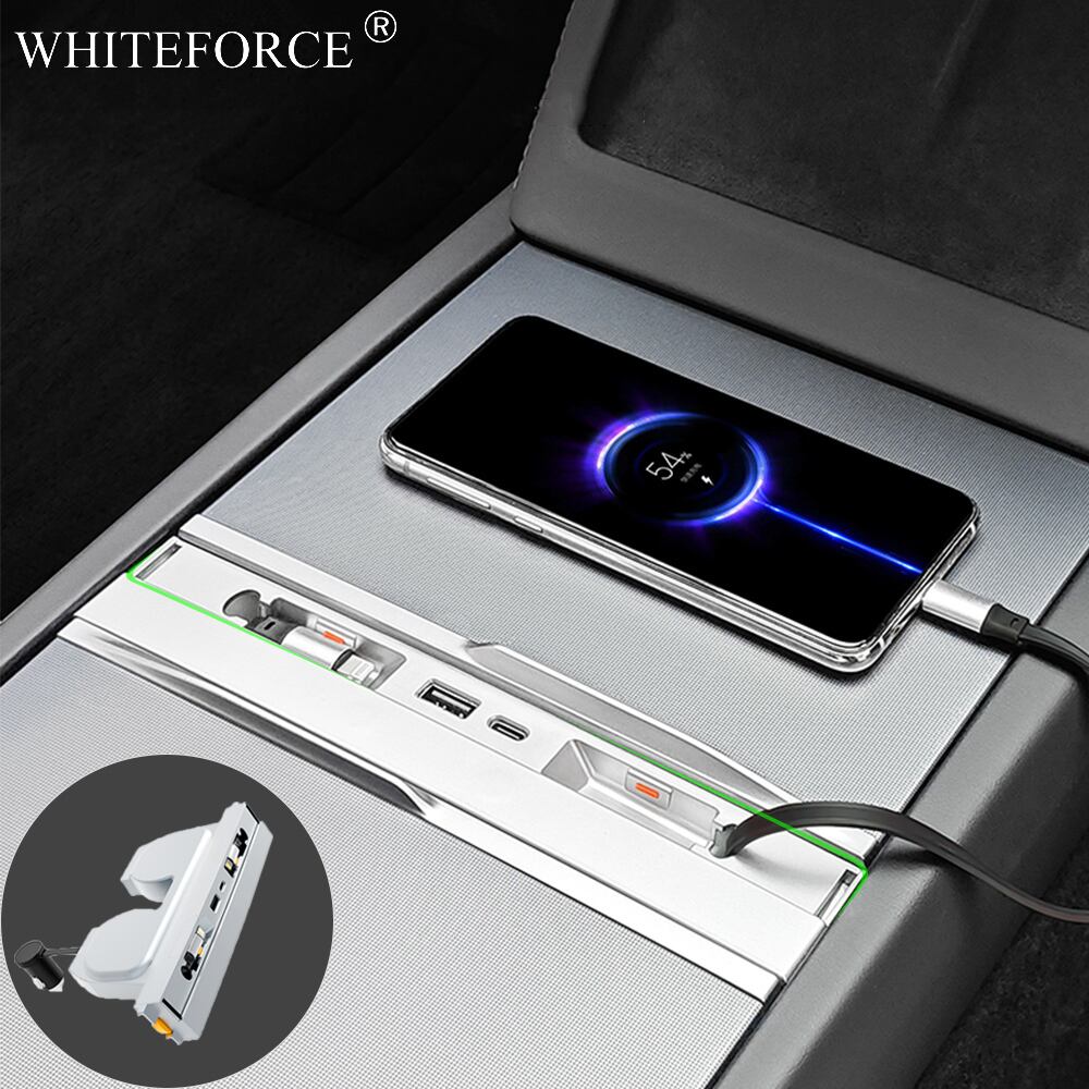 テスラモデル3用のインテリジェントドッキングステーション,ドックタイプc,27W急速充電器,USB拡張機能,電源コンセント