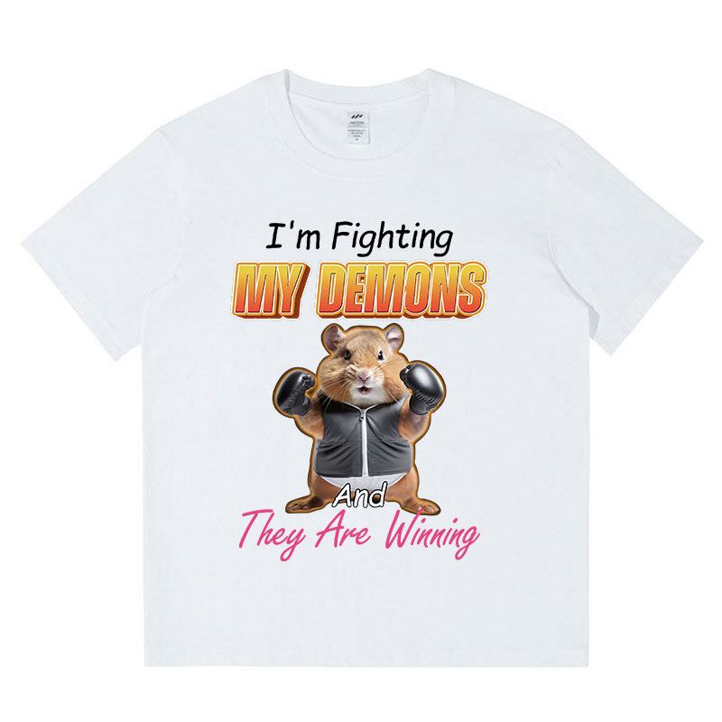 メンズヴィンテージ半袖Tシャツ,面白いTシャツ,浮腫の戦い,勝利のハンスター,特大のストリートウェア,ファッション