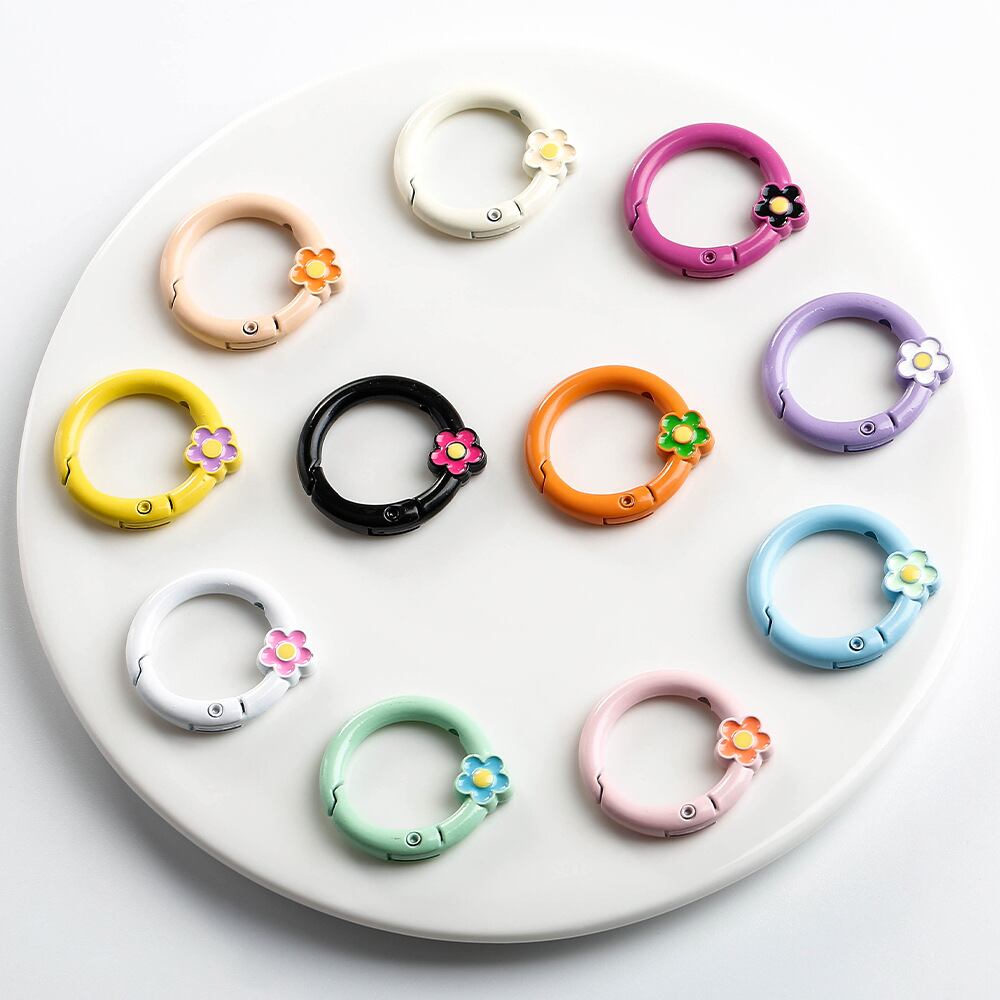 Openable Round Carabinerキーホルダークリップ、ランダムカラーメタルOリング、キャンディーカラー、フラワースプリングクラスプ、フ