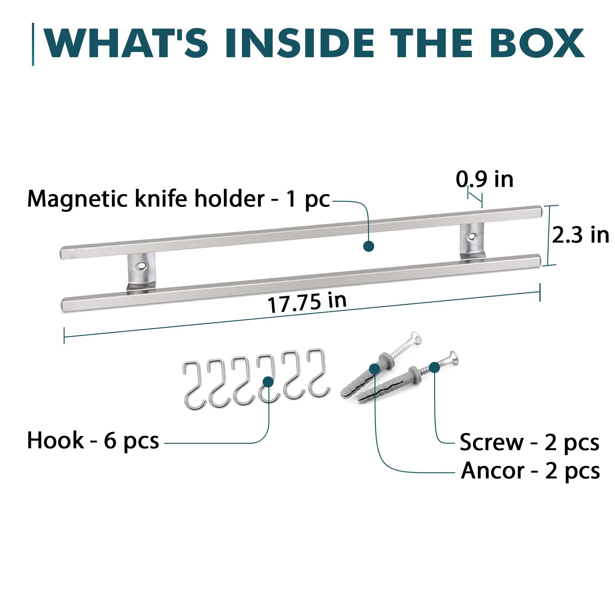 壁用磁気ナイフホルダー、ステンレス鋼、磁気ストリップ、マグネットバー、フック付きラック、18インチ